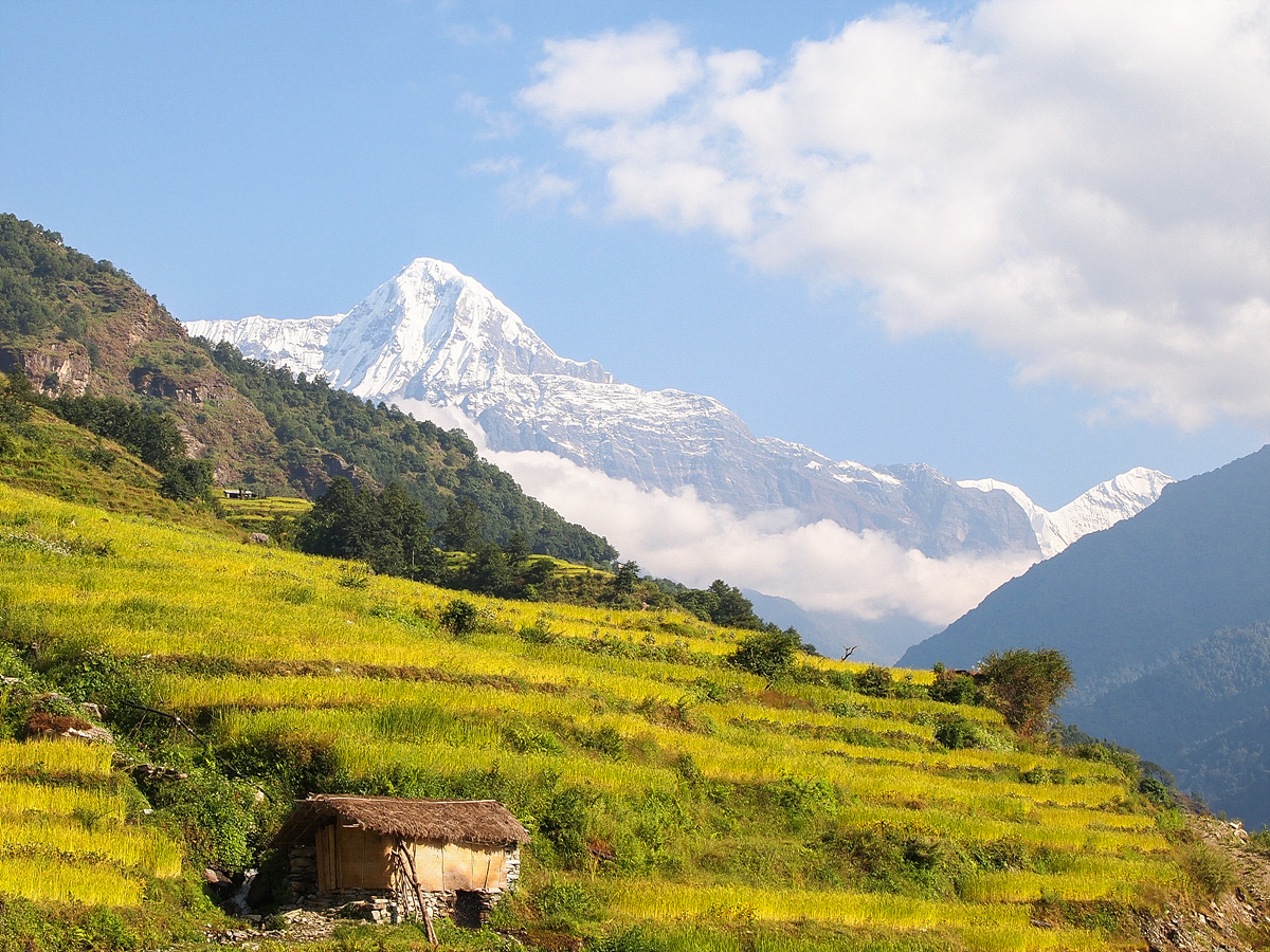 타다파니~간드룽을 거쳐 하루를 자고 다음날 트레킹 시작점 나야풀로 하산을 시작했다. 여기서부터는 안나푸르나가 왜 '수확의 여신'이란 뜻을 갖고 있는지를 여실이 보여주는 장면이 펼쳐진다. 산을 깎아 만든 계단식 논에는 누런 벼들이 고개를 숙이고 있다.