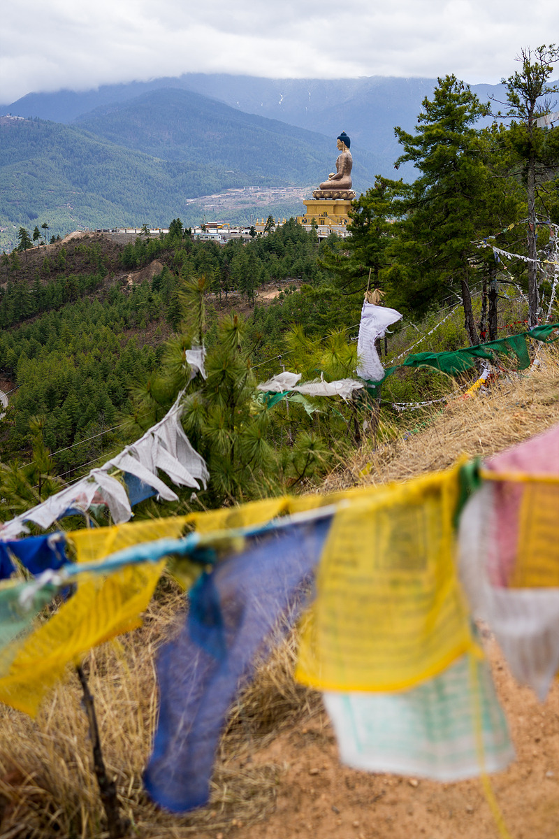 팀푸에 도착해 처음으로 향한 곳은 '쿠엔셀 포드랑 자연공원(Kuensel Phodrang Nature Park)'. 매력적인 부탄의 바람을 맞으며 15분 가량 언덕에 오르니 팀푸를 한눈에 내려다 볼 수 있는 뷰 포인트가 나왔다. 곳곳에서 불교 경전이 적혀 있는 룽다가 흩날린다. 이제야 가슴이 탁 트이는 게 '부탄에 오긴 왔구나~' 하는 느낌이 든다.