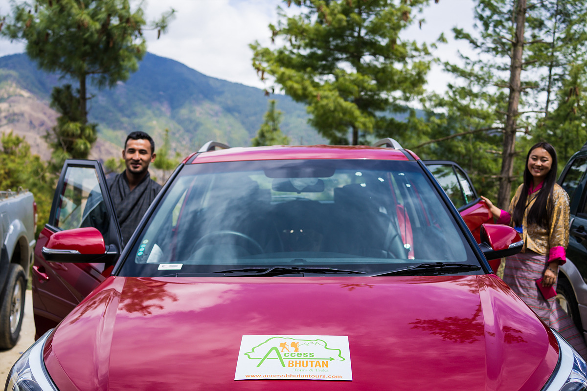 그렇게 조금은 씁쓸하게 부탄에서의 5박 6일을 안내해 줄 가이드와 드라이버를 만났다. 20대 초반의 페마 유딘(가이드)과 30대 초반의 페마 도지(드라이버)가 부탄 여행의 동반자였다. 유딘과 도지 역시 부탄의 전통의상 키라와 고를 입고 있었다. 고구려 수렵도 속에서 튀어나온 듯한 느낌의 전통의상을 입은 두 명의 안내자는 밝은 미소로 방문자를 반기며 환영의 의미로 흰색 스카프를 목에 걸어 주었다.
