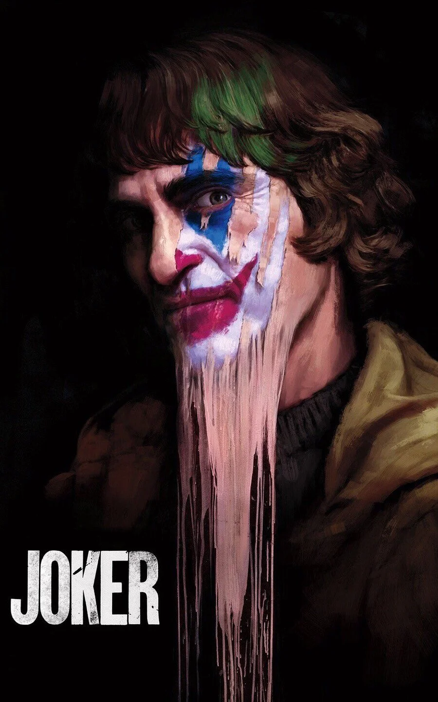 조커는 아서 플렉(호아킨 피닉스) 내면의 허구적 생명체입니다. 영화 속에서 아서 플렉을 진심으로 동정하는 사람은 단 한 명도 없지만, 그의 웃음 속에 숨겨진 진실을 알게 된 관객만이 그를 동정하게 됩니다. 대부분의 사람은 조커의 광기 어리고 뜬금없는 웃음에 폭력을 가하고 비웃지만, 관객의 마음에서는 눈물이 흐릅니다. 영화의 오프닝에서 흘리는 조커의 검은 눈물은 물감의 흘러내림이 아니란 것을 관객만 알게 되는 것입니다.