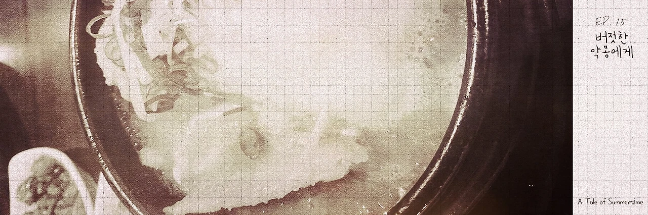그릇에 담긴 적나라한 모습의 삼계탕이 두 사람의 앞에 나왔다. 지수의 머릿속에 닭이 마당을 뛰어다니는 모습과 닭장 안에서 알을 낳는 모습이 떠올라 고개를 절레절레 저었다. 그 모습을 본 은혜는 본인도 그런 생각을 가끔 한다고 말했다. 그래서 비건으로 살아갈까도 고민하고 있다고 말했다. 지수는 인삼을 씹으며 그래도 요즘 더위에 체력이 너무 딸려 먹어줘야 한다고 말했다.