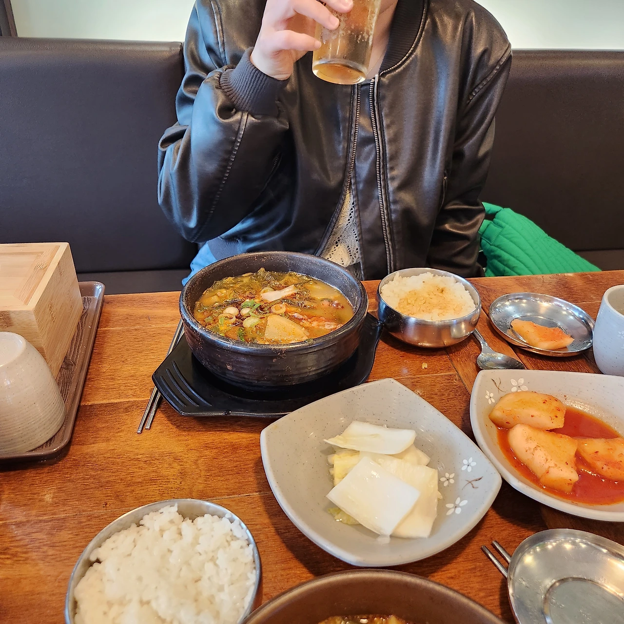 짠맛을 담당하는 남자는 아주 끝까지 남아서 입안을 맴돈다. 한편 단맛을 담당하는 여자는 짠 기운을 어떻게든 무마한다. 우리가 해장국을 먹는 이유 중에 하나인 단짠. 결국 국물만이 남아 최소한의 감정을 해소한다.