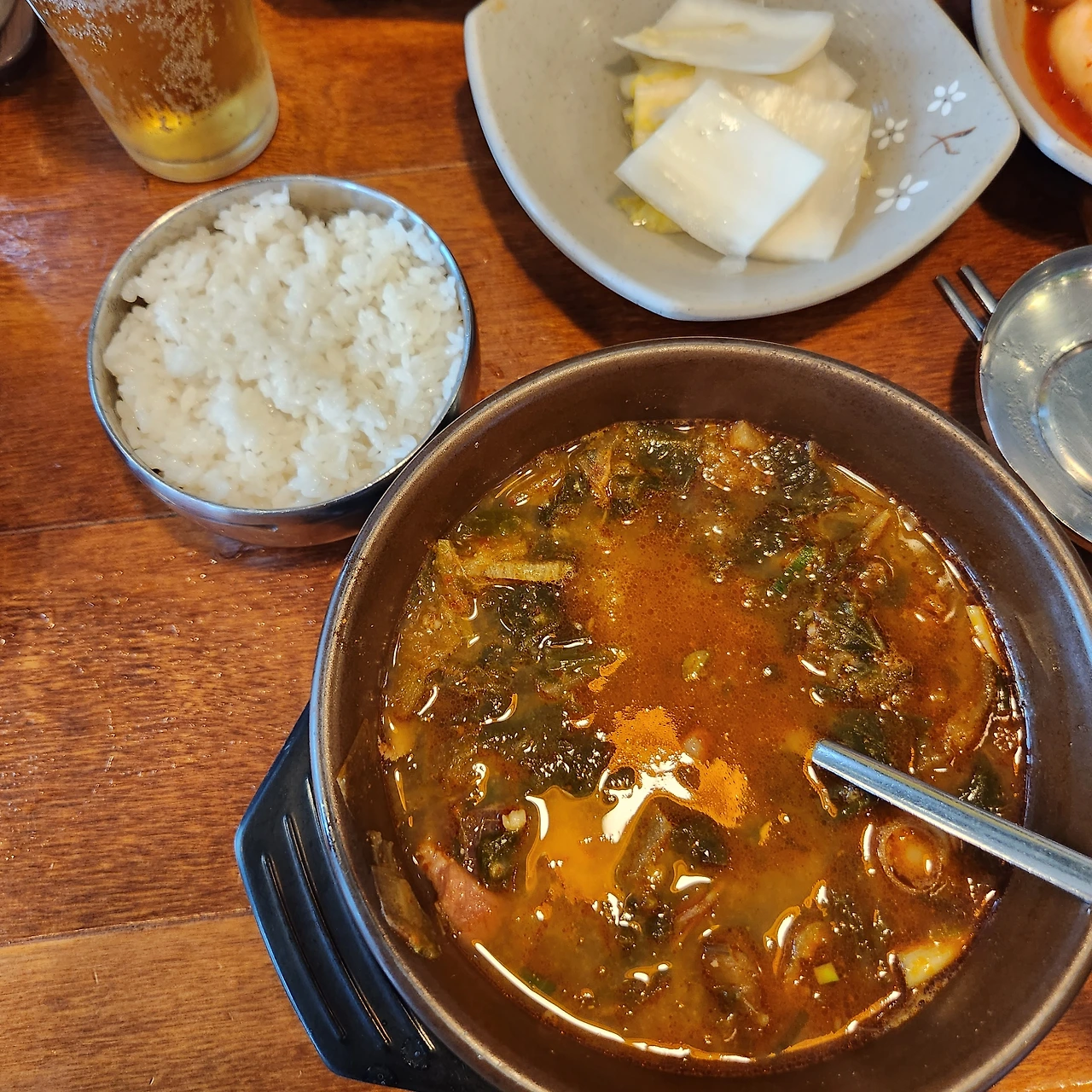 감정의 해소, 지금까지의 이야기로는 전혀 해소되지 않은 듯한 단맛과 짠맛의 사이의 남은 국물에는 아주 진한 이야기가 담겨 있다. 흔히들 말한다. 해장국은 달고 짜기에 좋지 않다고 한다. 또 숙취는 충분한 알코올 분해가 되지 않았다고 생각할 수 있지만, 반대로 수분과 당분이 공급되어 최소한의 숙취가 해소가 된다.