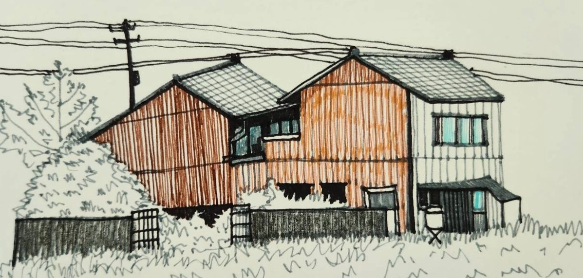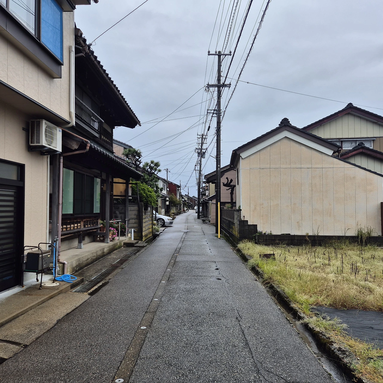 다카오카 신미나토 대교 아래 마을의 작은 집