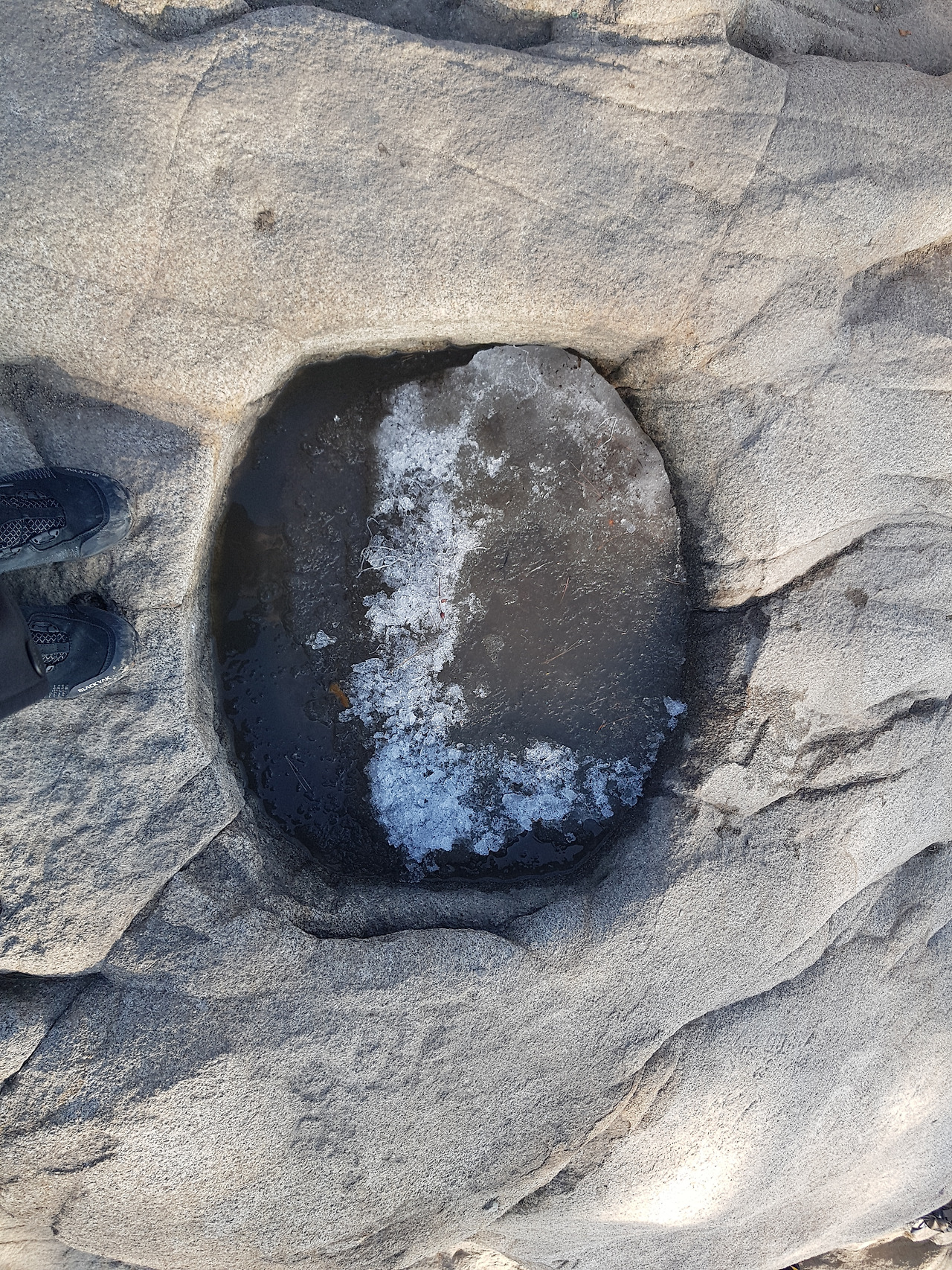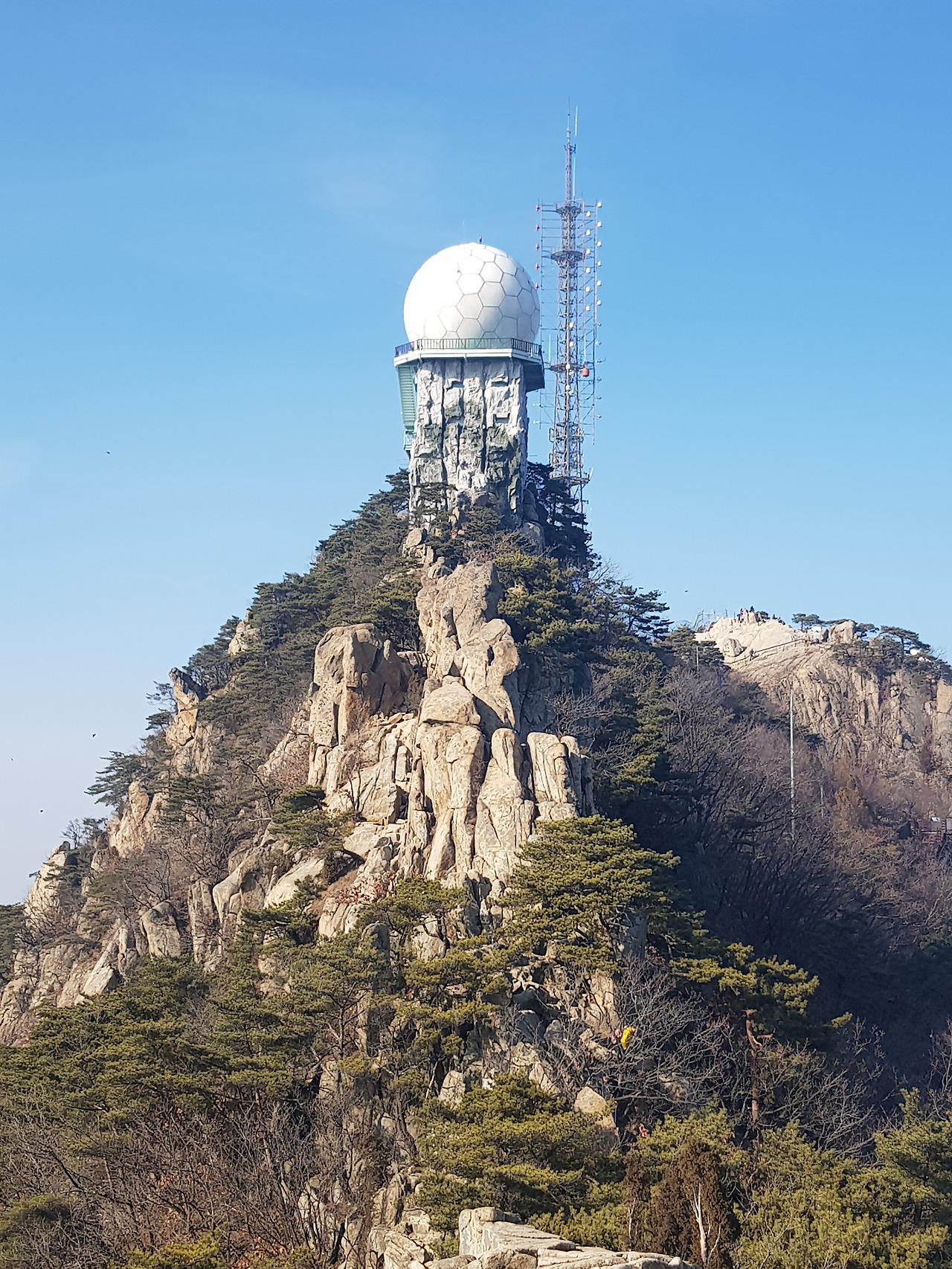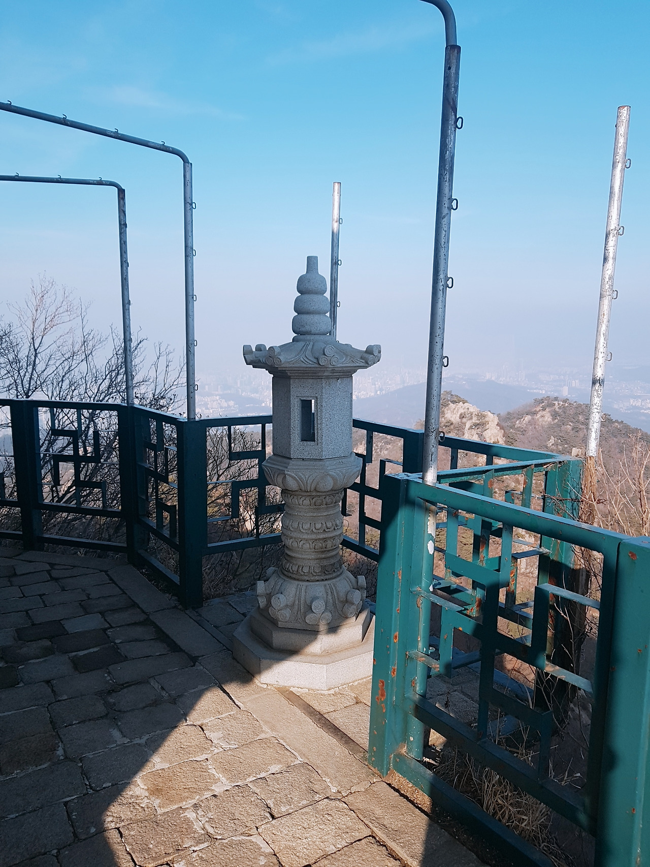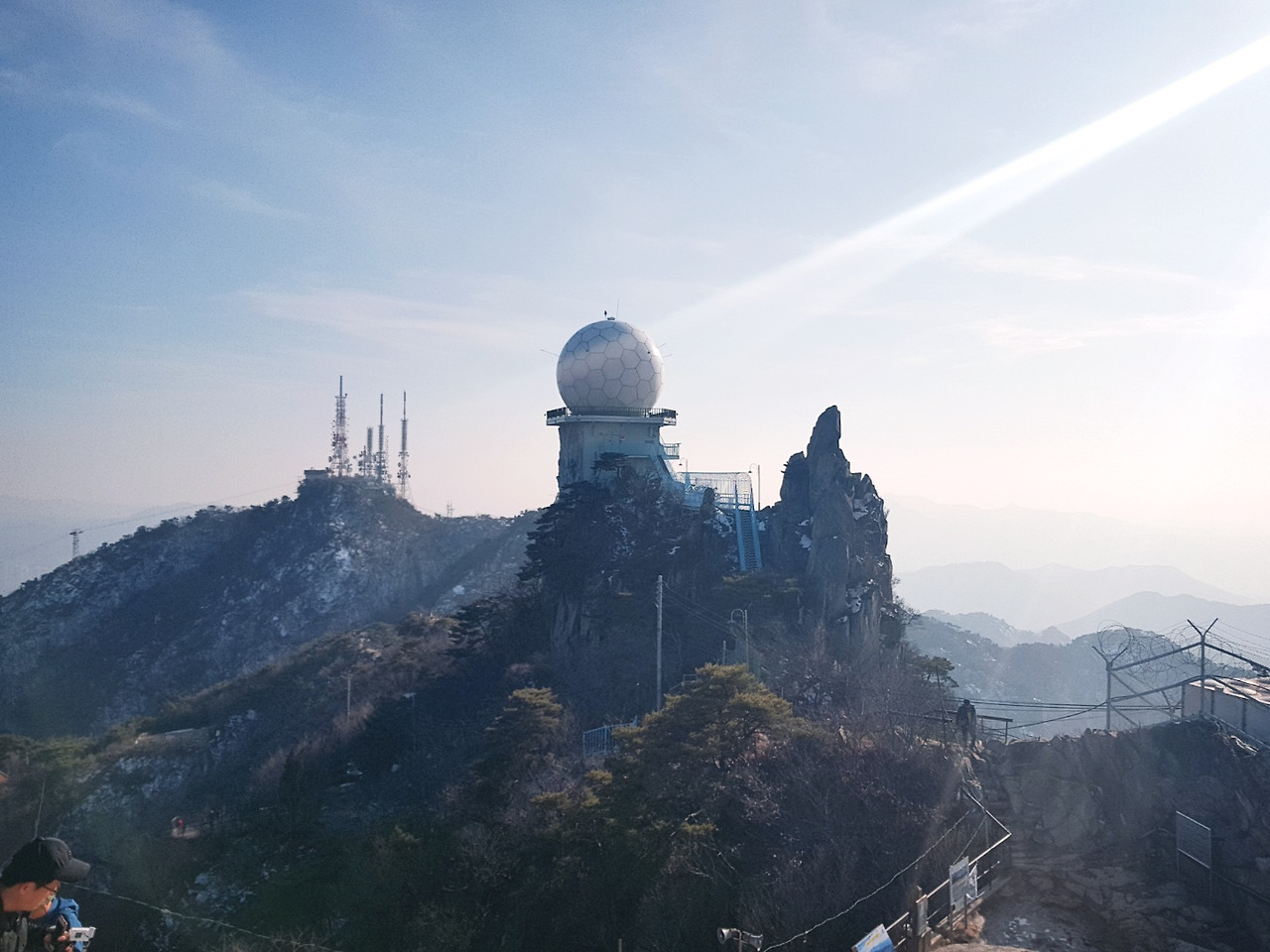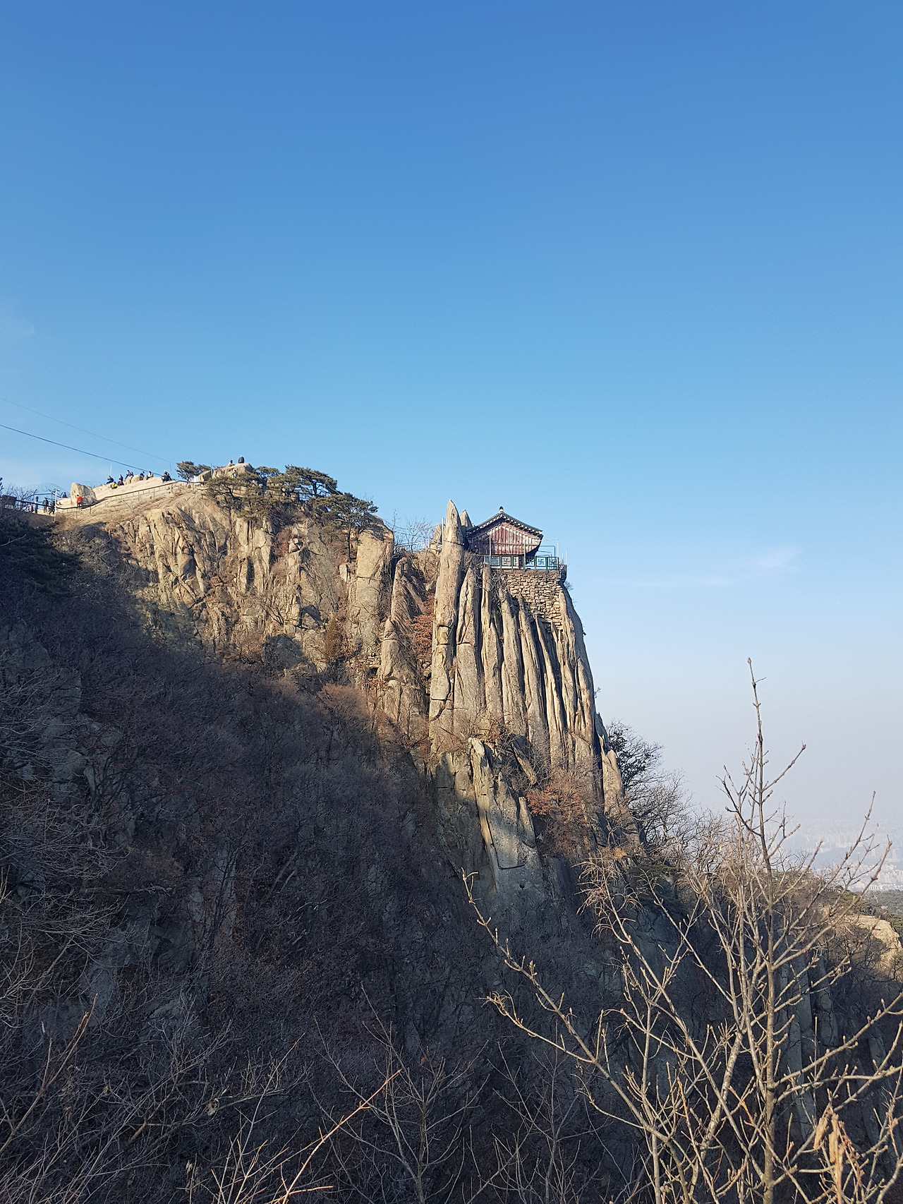 반환점? 쯤 돼 보이는 곳부터는 빛이 닿아 눈이 다 녹아있었고 돌만 보이는 저쪽 길이 내가 가야 할 길? 맞다. 올라야 할 길이다. 낭떠러지같이 돌만 있는 길을 오르다 보면 약 15분이면 정상에 다다른다. 사실 쉬운 길도 있다. 해발 629m, 사실 별로 높지 않아 눈만 없으면 금방 올라갈 수 있겠지...