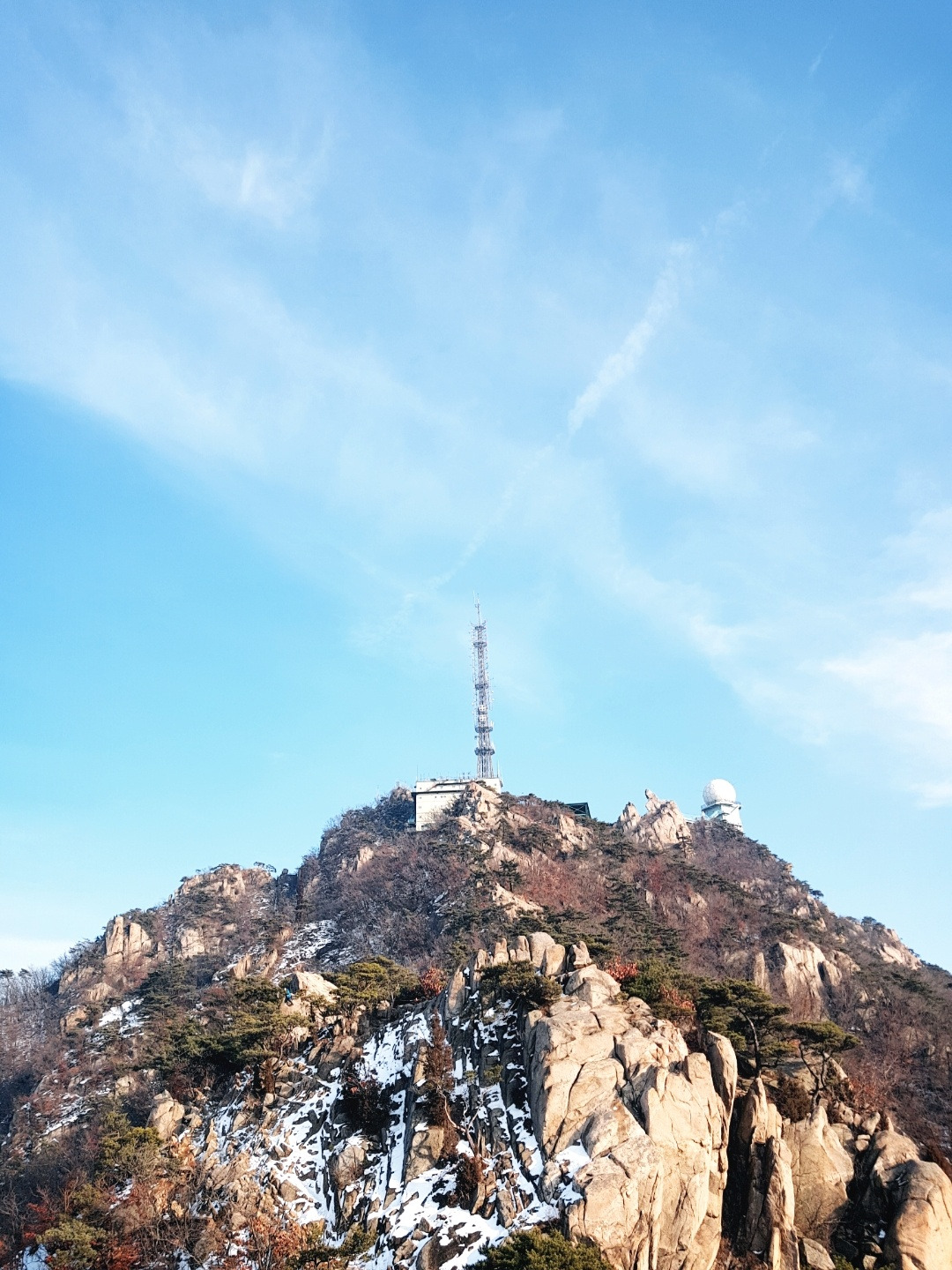 정상에 다다랐을 무렵 인스타에 올리기 좋은 비석이 우뚝!! 모두들 기념사진을 찍으려 기다리고 있었다. 반환점에서 본 연주암을 보고 정상에는 연주대가 있다. 다 가보고 싶었지만, 해가 질 것 같은 느낌이... 일단 인스타용 사진을 몇 장 찍었을 때, 대장님은 하산 결정을 하였다. 오르며 본 주위의 장경은 눈부시게 멋졌다. 내려가기 싫었지만 추워서... 이만