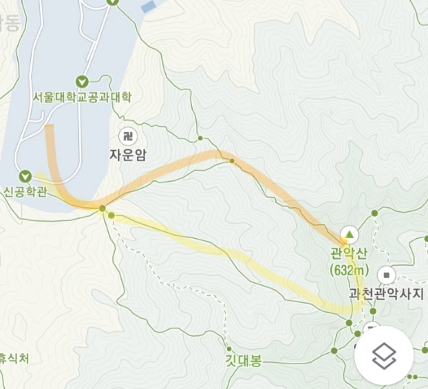 서울대 공학관으로 올라 조금 다른 길로 내려왔지만, 결국 같은 길이었다. 노란색 길로 올라갈 땐, 눈이 덜 녹아서 조금 미끄러웠는데, 내려오는 주황색 길은 눈 따위는 없었다. 밧줄과 돌이 많을 뿐이다. 뭐 힘들진 않았지만, 괜히 악산이 아녔다는 생각을 하며 하산하였다.