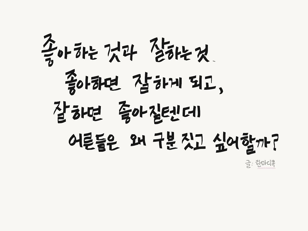 좋아하는 것과 잘 하는 것은 전혀 다릅니다이 말을 듣고 생각이 들었습니다좋아하는 것과 잘 하는 것과구분될 수 있는 문제일까요?궁금합니다#한마디콕