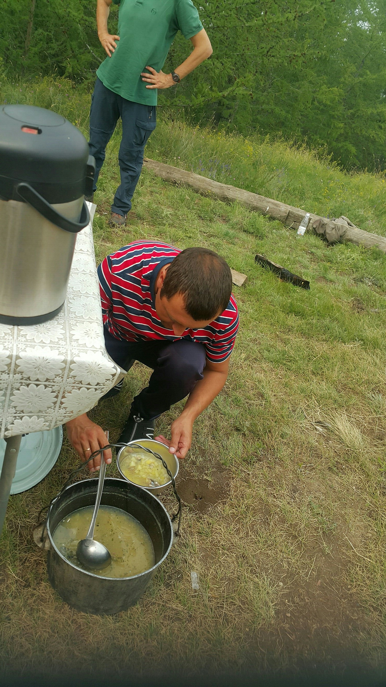 (우)점심은 캠핑 테이플을 차리고 투어가이드가 직접 만들어준다. 생선국와 함께 쌀밥을 차려준다.