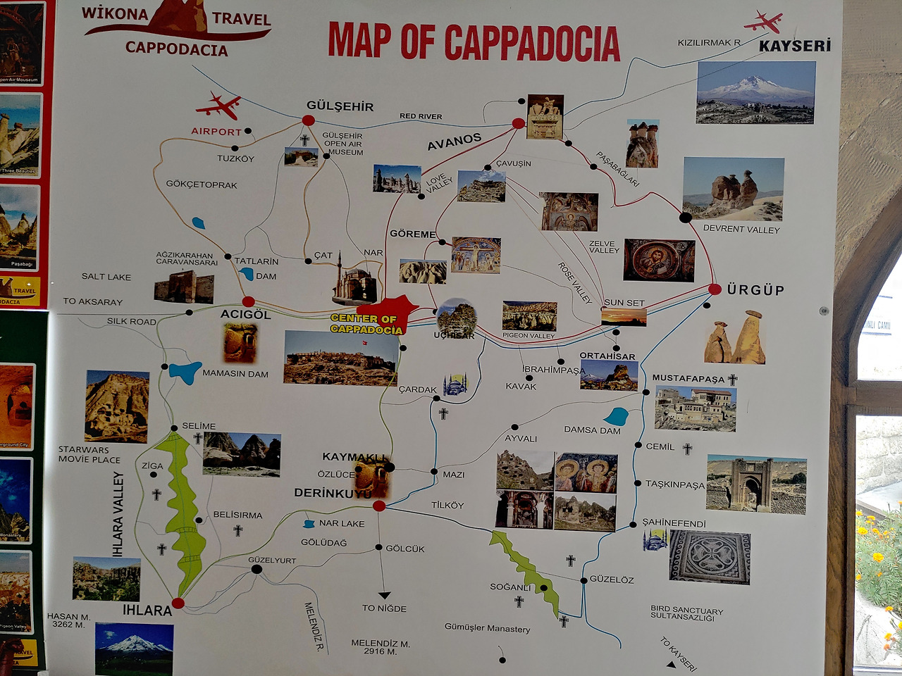 그렇게해서 난 다음날 네브셰히르 공항에 도착해서 괴뢰매마을로 갔다. 결혼식 주최하는 곳이 여행사인지라 픽업버스도 무료로 탈 수 있었다. 작은 돈이긴 하나 누군가에게 선물을 받은것 같은 기분이 매우 좋은 것이다. 카파도키아는 지역이름으로 그 안에는 여러 도시들, 마을들이 있다. 가장 큰 도시가 네브셰히르이고 여기에 공항이 있다. 그리고 괴뢰매, 우르굽, 아바노스, 우치사르, 카이세르, 데린쿠유 등의 마을들이 있다. 괴뢰매의 관광업에 종사하는 많은 사람들이 괴뢰매에 거주하는 것이 아닌 네브셰히르에서 출퇴근을 한다. 괴뢰매가 관광지로 부상하면서 토박이 현지인들은 운좋은 호재를 만났던 듯 하다. 많은 이들이 관광업으로 돈 좀 벌었다고 한다.