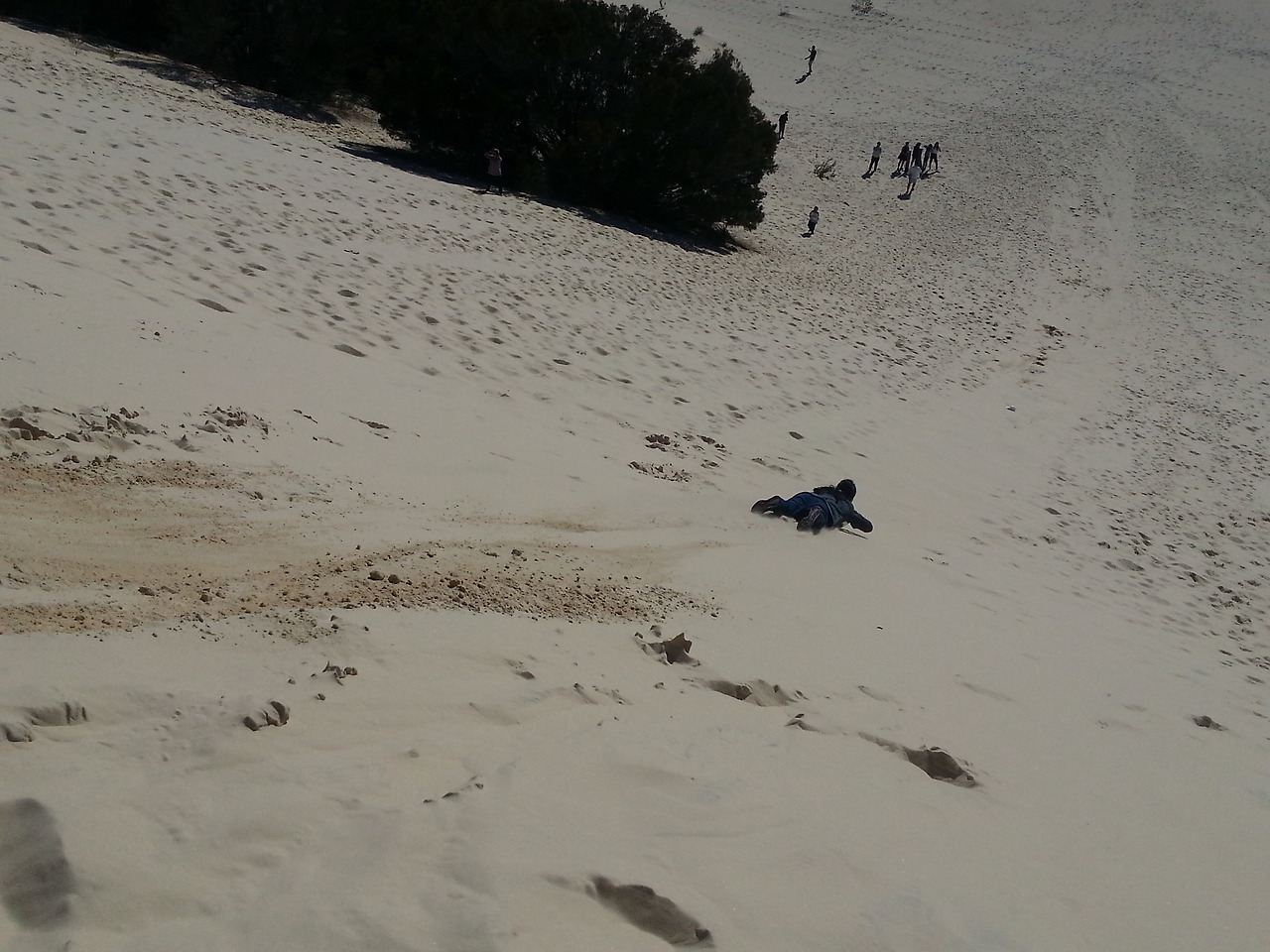 스킨스쿠버를 마치고는 다시 차를 타고 이동하여 샌드보드를 타러간다. 스노우보드와 똑같이 생긴 보드판을 발로 올라타는 것이 아닌, 누워서 배로 올라탄다. 그리고 높은 모래언덕에서 미끄러져 내려간다. 짧은 시간동안 스릴 넘치는 경험을 하지만, 마지막 샌드보드가 멈췄을 때 내 입속엔 모래가 한가득했다.