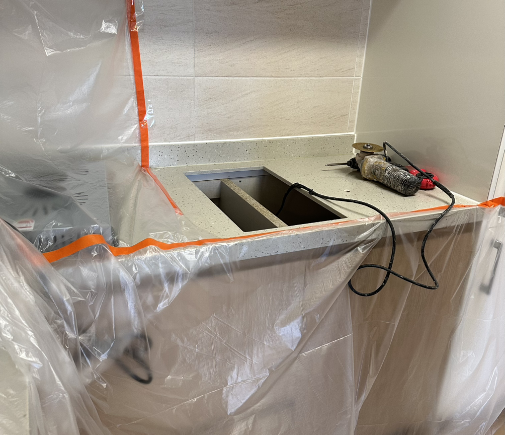 헐, 전에 인덕션 설치해 주셨던 분은 30만 원 불렀던 건데. 트로트 틀어주고 오렌지 썰어주고 말동무해드린 보람이!!! 사장님은 주방을 전부 비닐로 막고 인덕션 타공 안쪽에 있는 나무판을 드릴로 잘라내셨다. 뽀얀 연기와 엄청난 굉음과 함께. 진심 맥가이버인 줄.