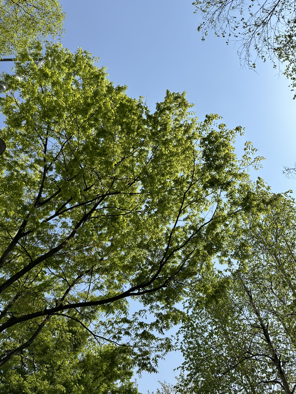 점심을 먹고도 뒹굴뒹굴 쉬고 싶었는데 아쉽게도 당근 거래가 있었다. 엄마가 안 쓴다고 주고 가신 고급 냄비 2개. 하나는 우체국 택배로 보내야 했고 하나는 직거래였다. 우체국에 가기 위해 무거운 몸을 이끌고 나왔는데 완전 봄 날씨에 나무의 초록잎이 너무너무 예뻐서 혼자 감탄을 하며 연신 사진을 찍어댔다. 화장을 하지 않아 마스크를 쓴 상태여서 편하게 육성으로 중얼거릴 수 있었다. '와, 대박 예쁘다~~~' 봄의 연둣빛은 황홀 그 자체다.