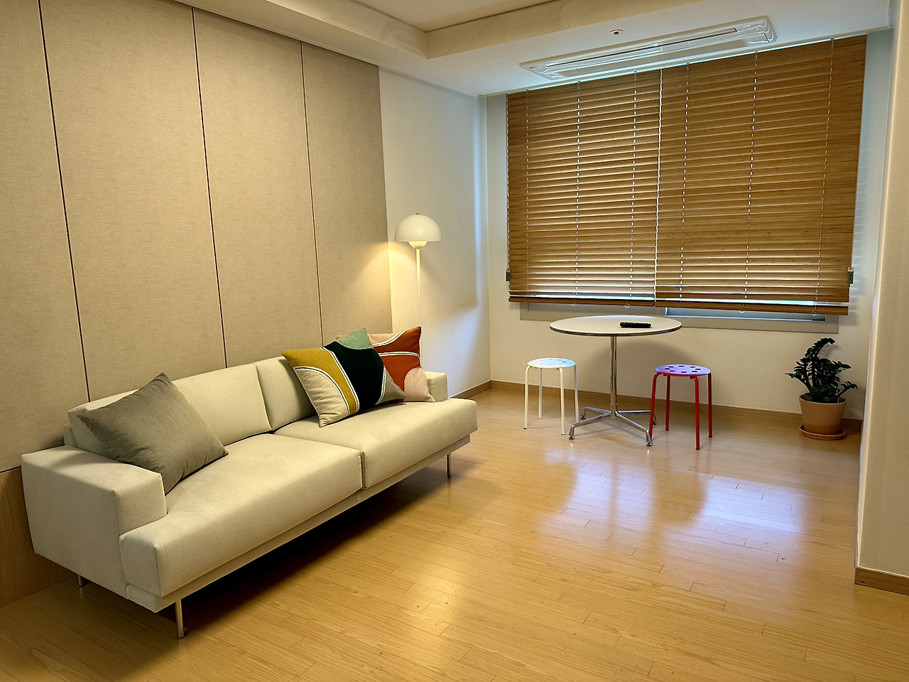 사진으로는 소파가 상대적으로 작아 보이지만 실제로 보면 크기가 딱 적당하다. 여기서 30cm 더 길어지면 살짝 부담스러울 듯. 남편은 조금 더 커도 좋을 것 같다고 했지만, 나는 공간이 넓은 게 좋다. 나중에 넓은 집으로 이사하면 그때 큰 소파를 사야지.