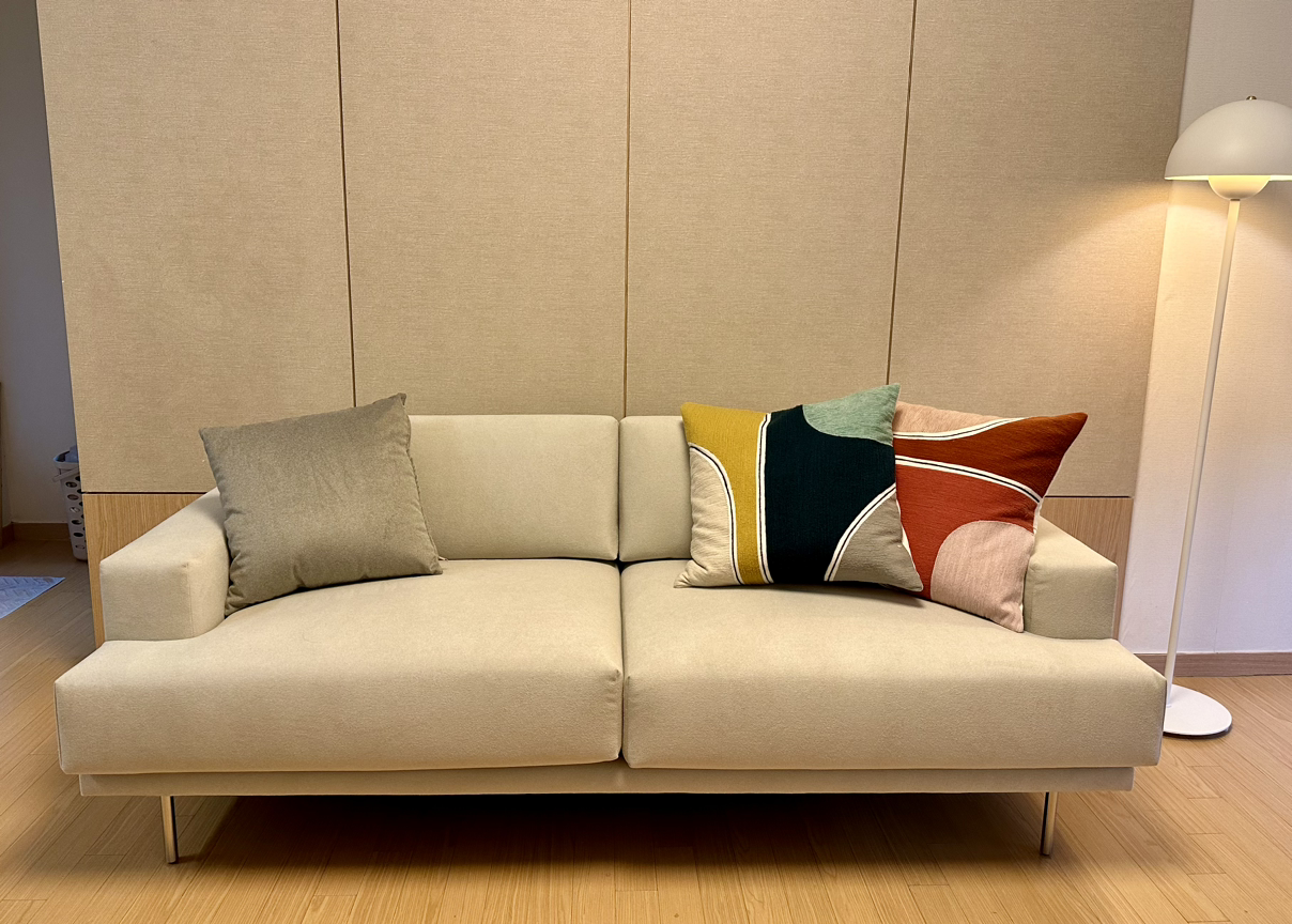 우리가 구입한 소파는 바이헤이데이(BYHEYDEY)의 MULTI 패브릭 소파. 넓게 쓰던 공간에 갑자기 큼지막한 가구가 들어와 어색하지만 계속 보다 보니 마치 원래 우리 집에 있던 소파처럼 잘 어울려 만족스럽다. 갈 곳을 잃고 거실 한쪽 구석에 방치되어 있었던 쿠션들도 제자리를 찾았다. 쿠션은 2개가 딱 좋은데 소파를 살 때 하나를 무료로 받아서 3개가 되었다. 일단 두기로 했다. (퀴즈: 무료로 받은 쿠션은 무엇일까요? 힌트: 엄청 쉬움)