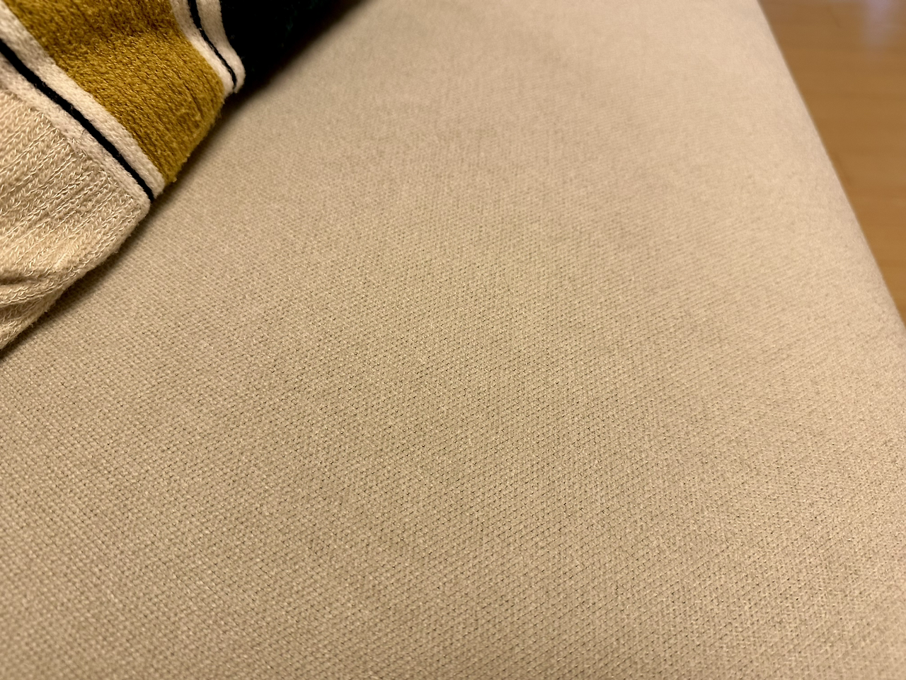 요리조리 살펴보고, 앉아보고, 손으로 쓰다듬으며 패브릭 결을 느껴보았다. 이지클린과 방수 기능을 가진 기능성 패브릭이다. 쓸어내리는 방향에 따라 조직이 살짝 일어나기도 하고, 결대로 매끄럽게 눕기도 한다. 관리를 잘해야 할 듯.