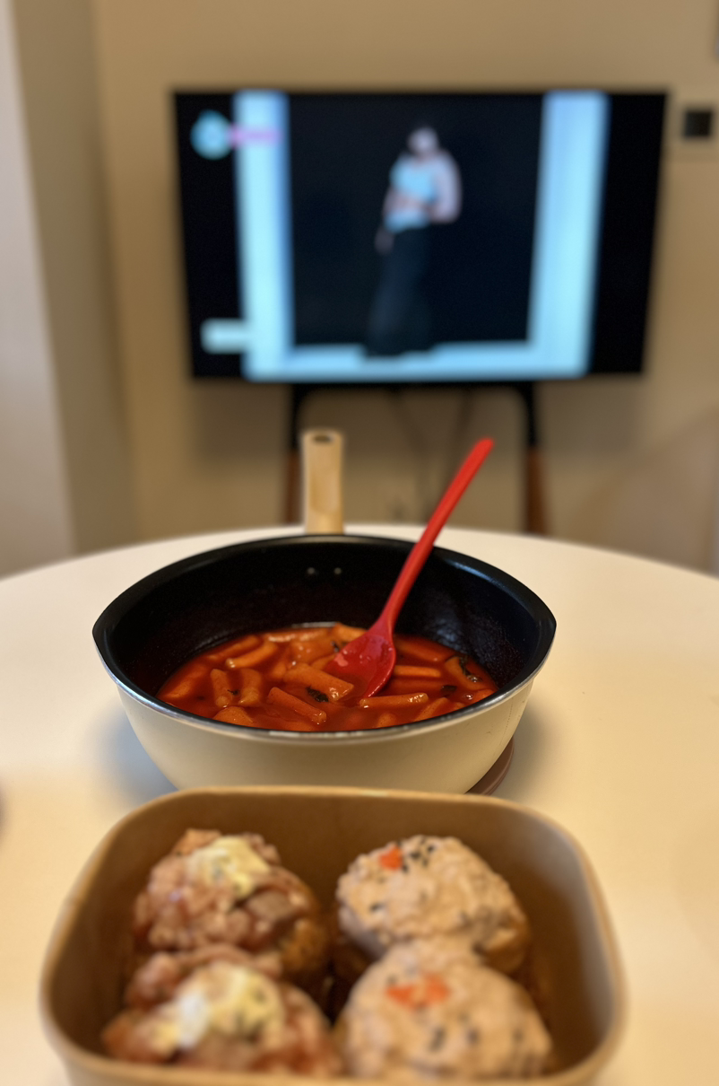 씻고 나오니 금방 점심 먹을 시간이 되었다. 점심 메뉴는 전에 엄마가 주고 간 비비고 떡볶이 당첨! 떡볶이만 먹으면 심심하니 근처에서 파는 유부초밥을 사 와서 곁들이기로 했다.