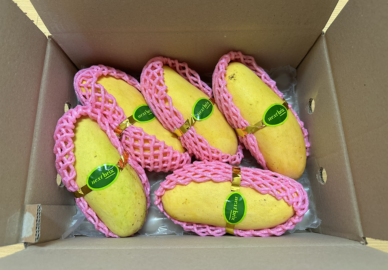 어슬렁어슬렁 거실로 나와 전날 배송 온 망고 상태를 확인했다. 요즘 '온브릭스'라는 곳에서 종종 과일을 시켜 먹는데 과일 상태가 좋아 만족스럽다.