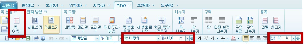여백 : 기본 세팅 / 글자크기 : 10pt / 줄간격 : 160%
