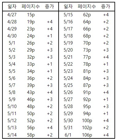 결론적으로, 하루에 한 꼭지를 완성해야 했어요.