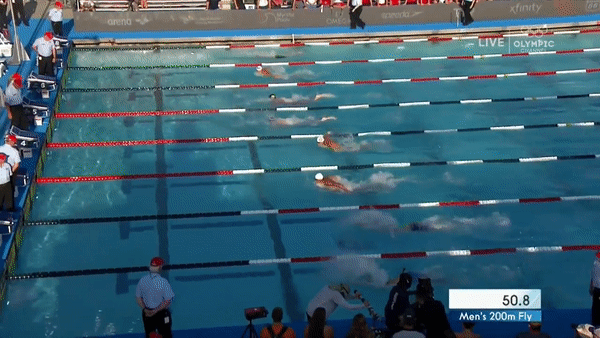 200m 터치패드를 향한 마지막 50m , 혼신의 힘을 다해 강한 스트로크를 펼친다.