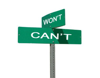 주어진 일을 수행할 수 있는 능력이 없는 상황 - 못하거나 (Can't do it)