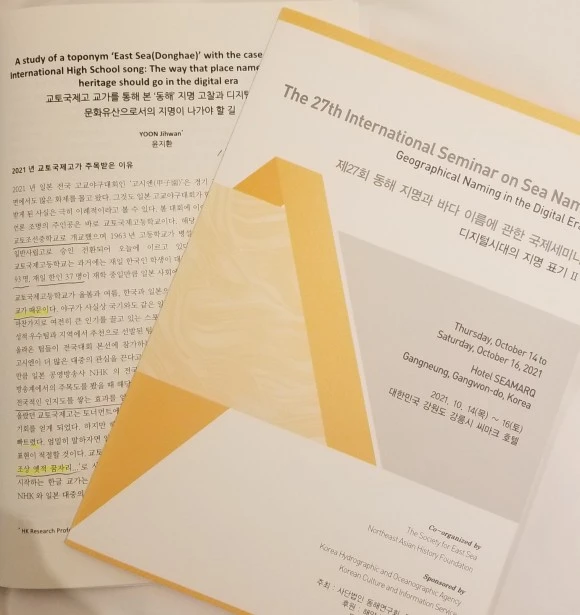 윤 교수의 발표와 나의 보충설명으로, 세미나 참석자들이 일본에서 교토국제학교의 '동해' 한글 교가 방송에 관해 더욱 깊게 이해했을 것이라 생각한다. 하지만 그것도 그것대로 의미가 있겠지만, 무엇보다 '교토국제고의 교가'가 바다이름을 다루는 국제세미나에 등장했다는 것이 나에겐 흥분거리이고 역사적인 일이었다. 한때 그런 일의 연착륙을 위해 고민했던 사람으로서, 남다른 기분에 젖었다.