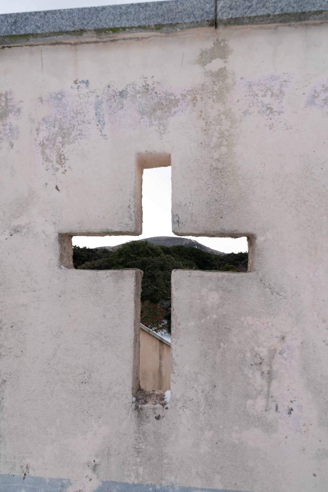 십자로 뚫린 공간 사이로 보이는 오름이 바로 '새미오름'