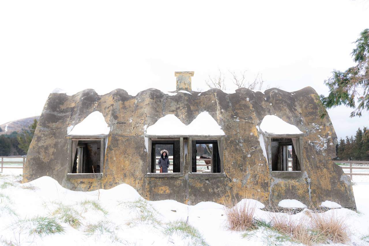 우유팩 속에 들어갔어요. 뒤에 보이는 기념품 샵 <우유부단>이 오픈하려면 한 시간 더 있어야 하는데 운영하시는 분이 일찍 나와서 가게 앞 눈을 쓸고 계시네요. 이시돌 우유는 마트에서 사 먹는 걸로..