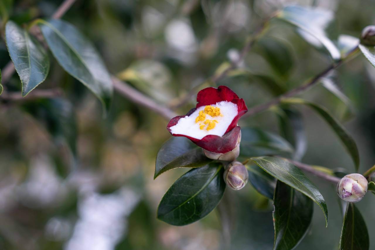 이거 봐요! 꽃 속에 흰 눈을 가득 머금고 있어요. 이 예쁜 모습을 발견하고는 얼마나 감동했는지~~ !