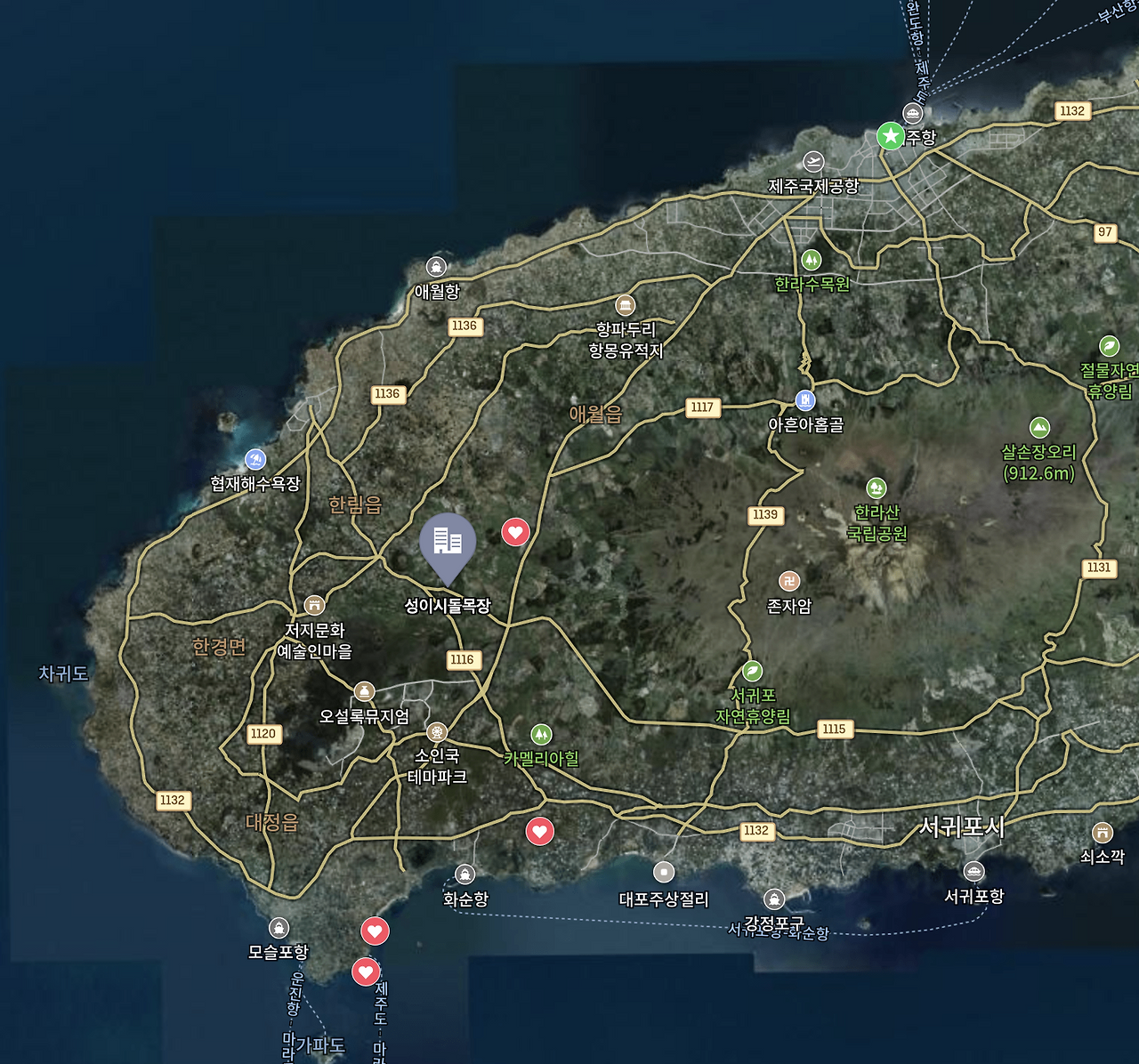 'OH's 제주' 목록을 펼쳐서 오늘 같은 궂은날 가볍게 산책할 만한 장소를 선택했지요.