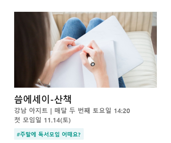 국내 최대 독서모임인 트레바리의 11월 시즌, [씀에세이-산책] 이 오픈했습니다. 저는 이 모임의 커리큘럼을 기획했고 4개월 간 모임을 진행하는 파트너로 함께합니다.