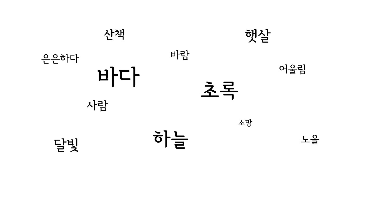 단어는 보는 이의 마음에 파장을 일으킨다. 사람마다 좋아하는 단어가 다르리라. 어떤 행위나 사물을 가리키는 의미가 좋아서, 발음이 예뻐서, 혹은 한글의 모양새가 마음에 들어서 등등. 누군가의 이름을 떠올리면 그 사람과의 일화가 생각나듯 단어가 상기하는 행복한 기억이 떠오를 수도 있겠다. 이유는 다채롭다.