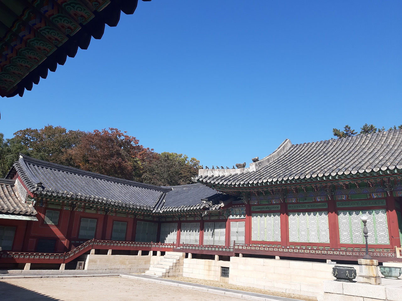 파란 가을하늘과 중첩되는 기와의 멋스러움이 고궁 산책의 즐거움을 배가시킨다. 오랜만에 종로에 온 아는 동생과 찬찬히 걸으며 바라보는 창덕궁은 그 자체로 눈과 마음이 즐거운 힐링이다.