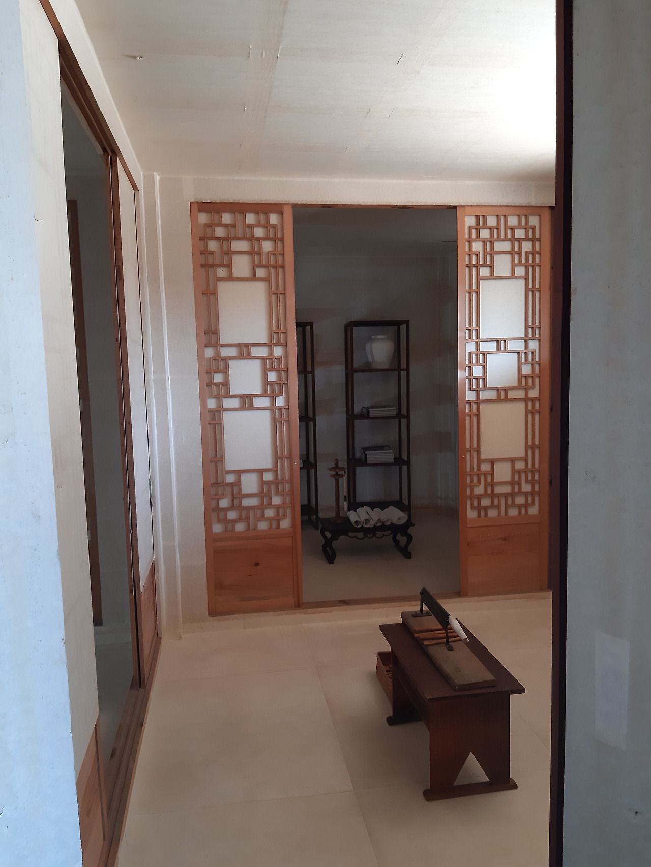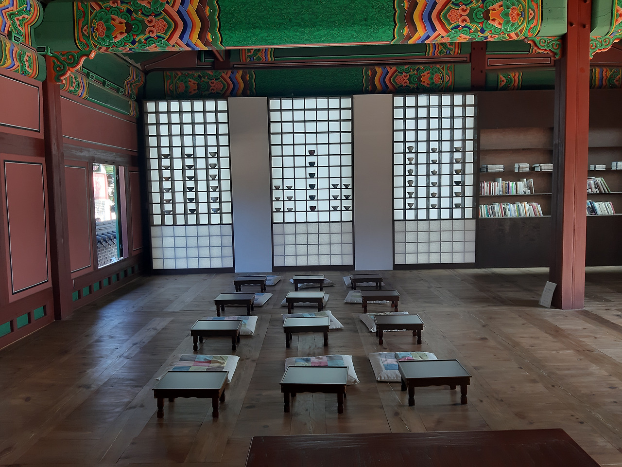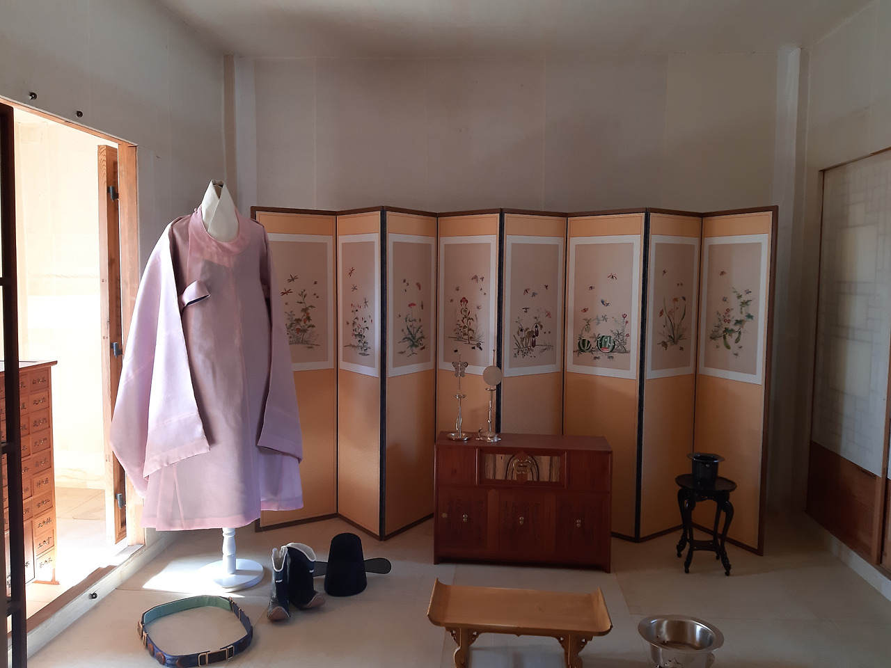 현재 창덕궁엔 11월 30일까지 '약방'이 열리고 있었다. 탕기, 임금의 탕약을 만들었던 의관원의 옷이 전시돼있고, 한방관련 책 등을 앉아서 읽을 수 있도록 북카페식의 방이 마련돼있다. 한지 베이스의 인테리어도 멋지지만 이곳에서 내다보는 창밖 풍경이 너무 좋았다.