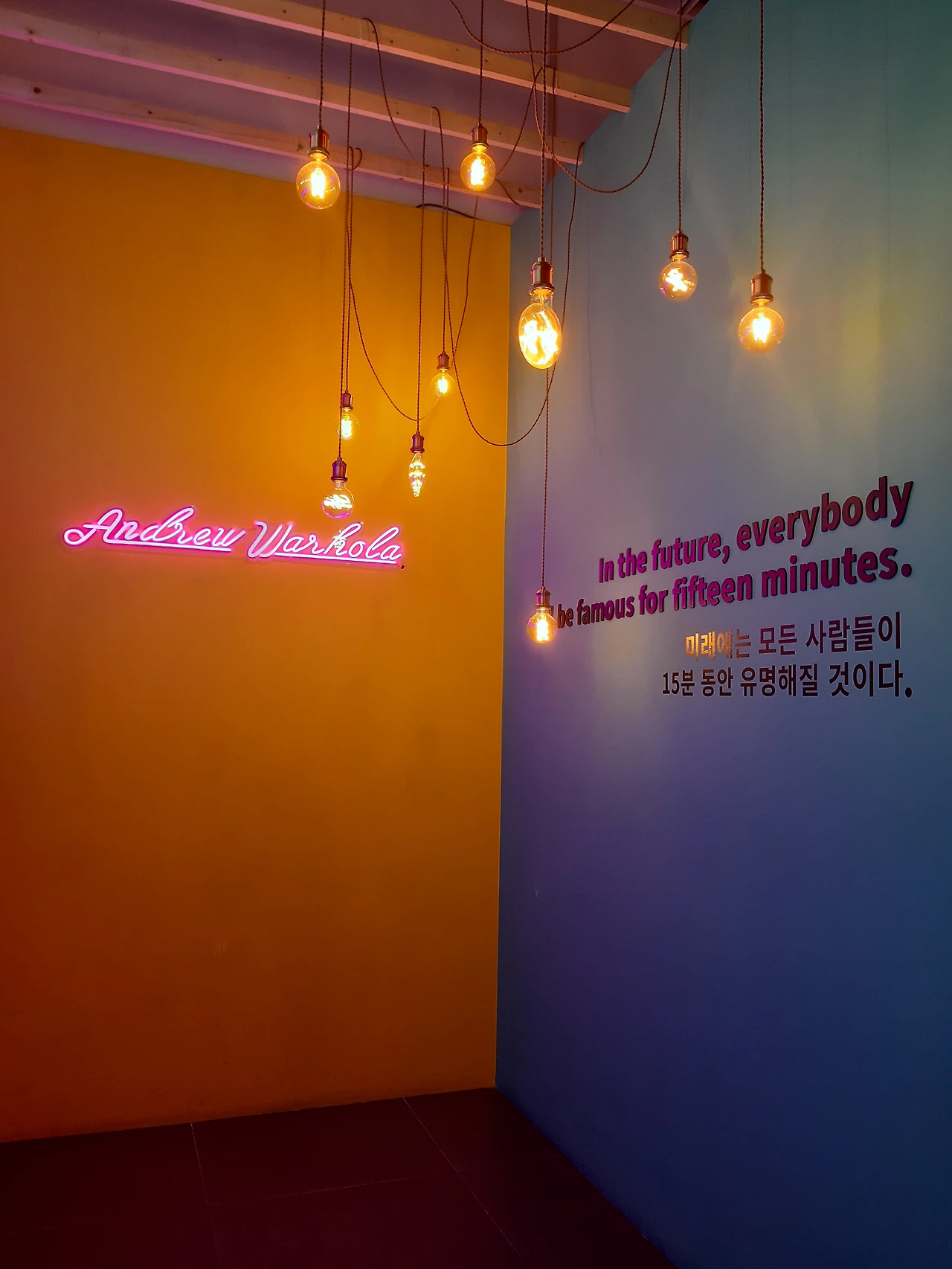 당시엔 질타를 받았지만 뛰어난 이들이 그렇듯 앤디워홀은 미래를 한 발 앞서 바라보는 눈이 있었다. 전시관을 빠져 나오며 본 위 글귀를 보면 그 예측이 틀리지 않음을 알 수 있었다. 틱톡, 유튜브, 인스타그램 등 각종 SNS가 난무하는 이 시대를 그는 이미 짐작했으니까.