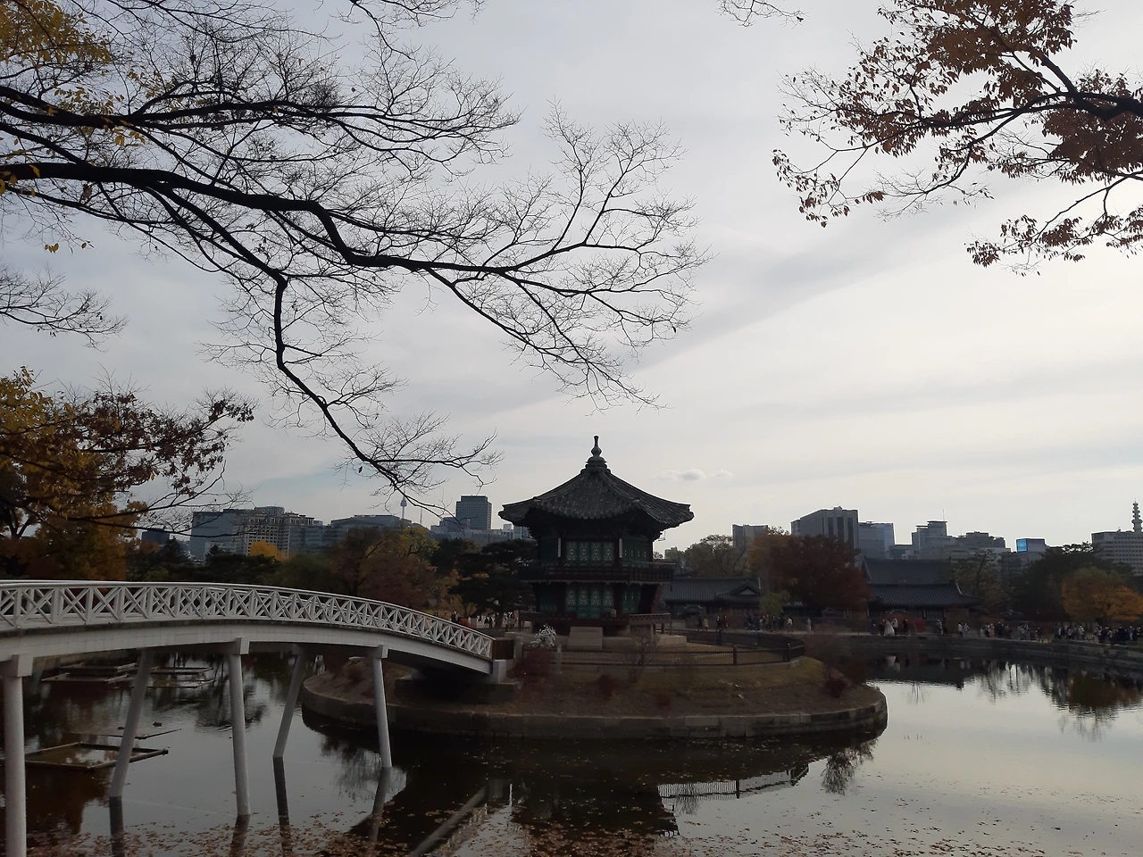 사진에선 경회루의 모습이 한적해 보이지만, 수많은 인파로 인물사진을 찍으면 단체사진처럼 나왔다. 오래 기다려 순간을 포착한 사진이다. 주말의 고궁나들이는 피하는 편인데, 지금이 아니면 단풍이 다 져버릴 것 같아서 마음 먹었을 때 움직이는 쪽을 선택했다.