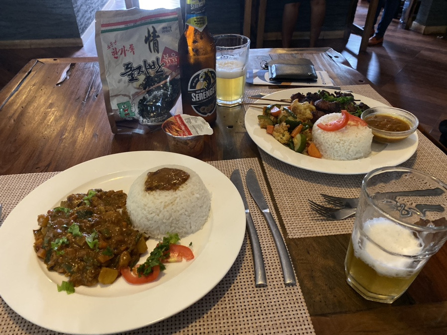 탄자니아 로컬맥주인 세렝게티 맥주와 함께 밥이 있는 음식을 주문했다. 한식을 가장 사랑하는 나는, 한국에서부터 가져온 김치와 돌자반부터 꺼내기 바빴다. 긴 비행에 지쳤던 탓인지 저녁 먹고 돌아와 저녁 7시반부터 잠이 들었다. 아무 걱정 없이 편히 잤던 밤이었다.