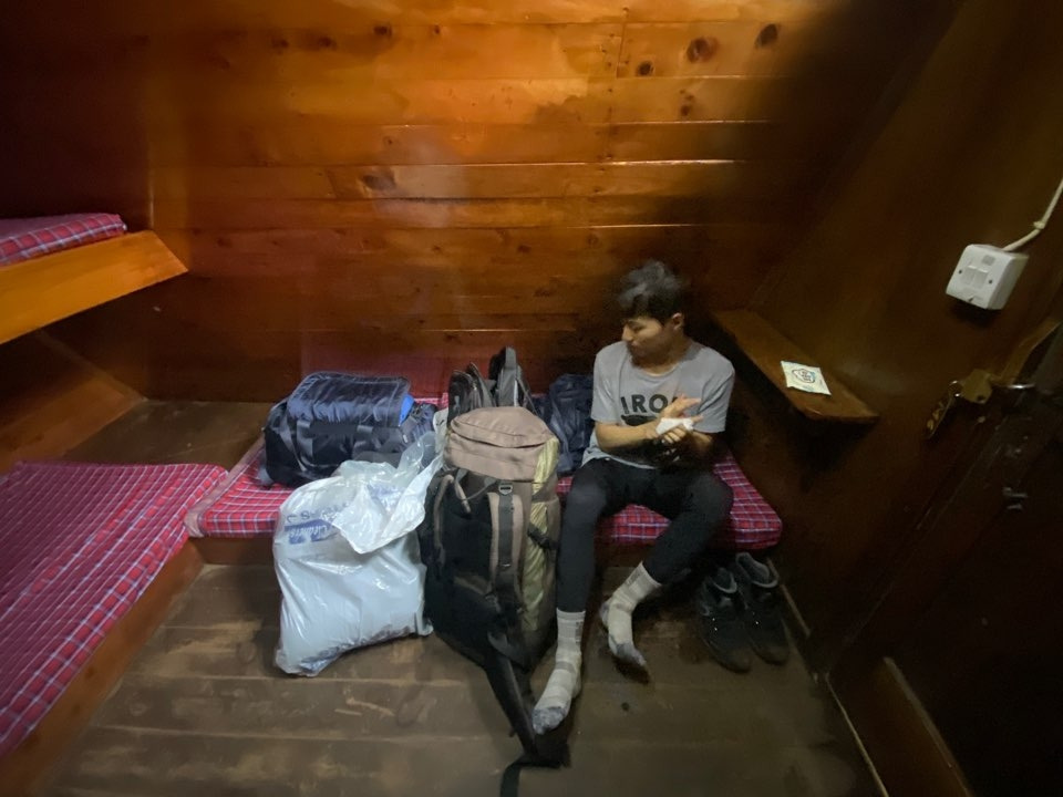 오직 더 이상 올라갈 수 없는 아픈이들만을 제외한 채. 고산병을 포함해 여러 증상을 호소하는 이들만 산장에 남고 모두들 -20도의 마지막 산행을 위해 온 몸을 꽁꽁 싸매기 바빴다.
