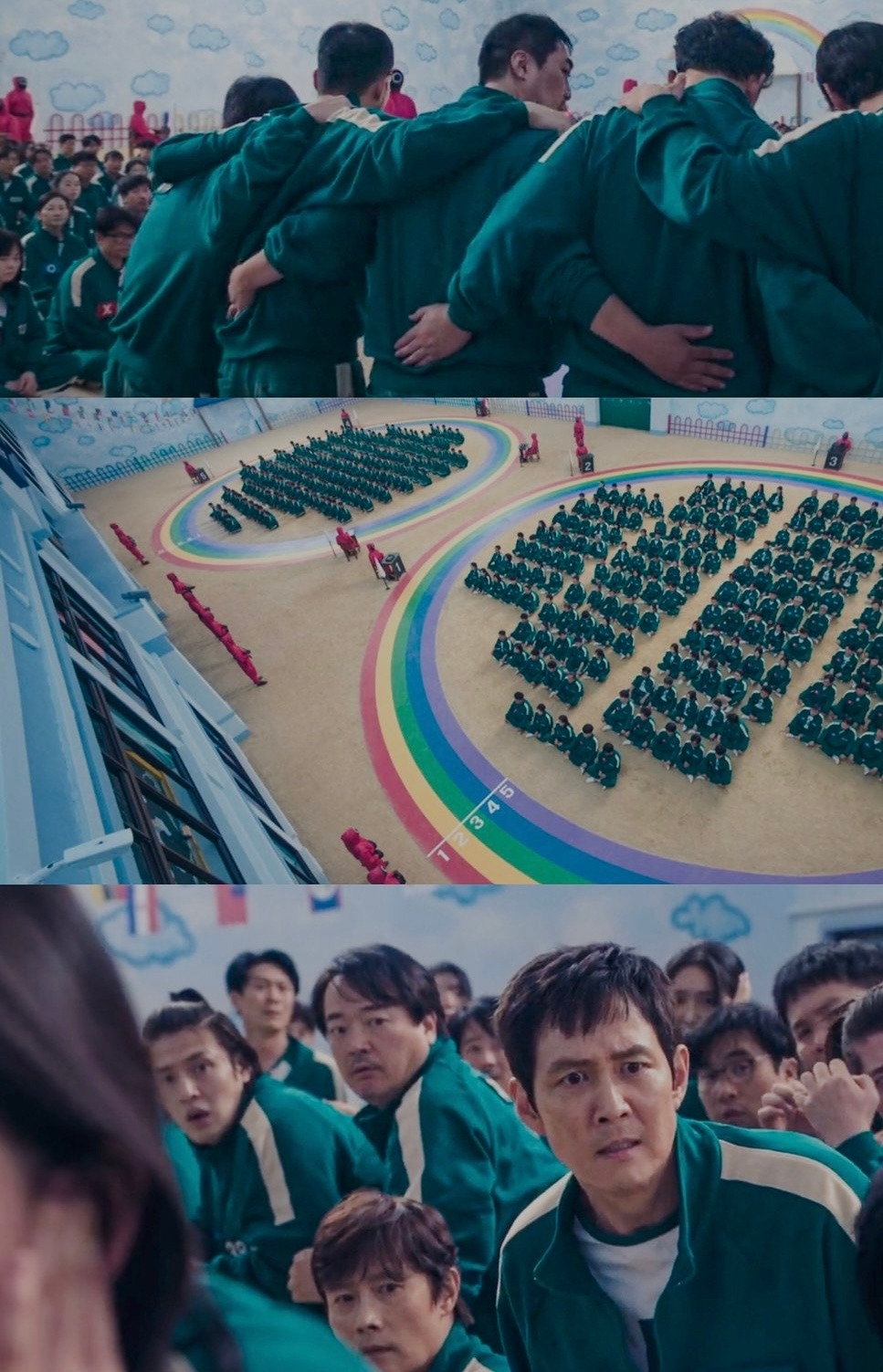 시즌 2를 보며 개인적으로 놀라웠던 점은 여전히 추억의 게임들이 남아 있다는 사실이었다. 시즌 1에서 “달고나 뽑기”나 “투명 징검다리 건너기” 같은 게임을 봤을 때, 개인적으로는 그게 놀이로 느껴지지 않았다. 내 경험 속에서 달고나는 간식이었고, “징검다리”는 유리 대신 봉을 타고 건너던 추억으로 남아 있었다. 간식으로 익숙한 소재를 놀이로 가져오고 , 극의 진행을 위해 놀이의 룰을 지나치게 바꿨다고 느껴졌다. 이런 점이 이미 소재가 고갈되지는 않았을까 우려하게 만들었다.
