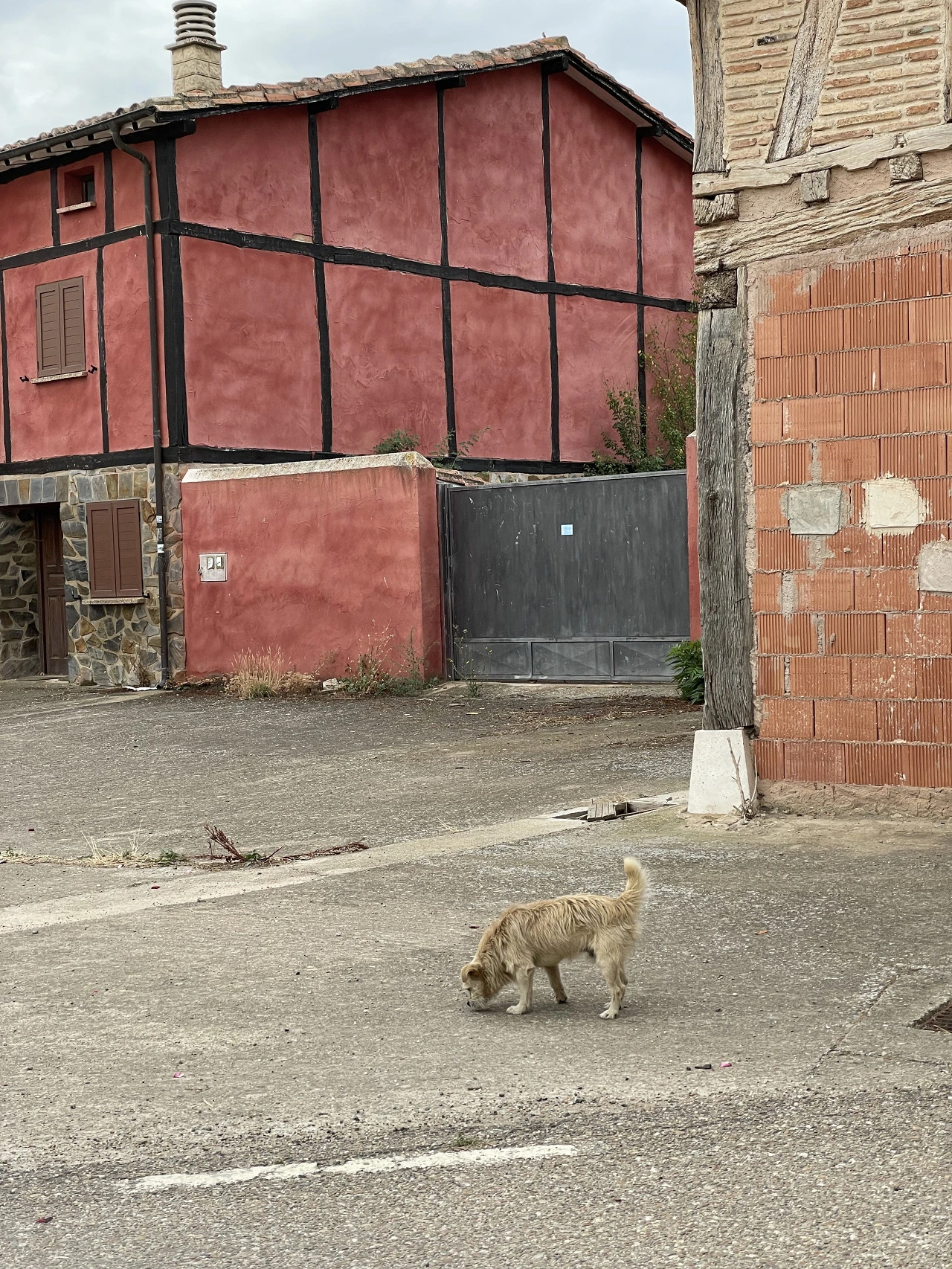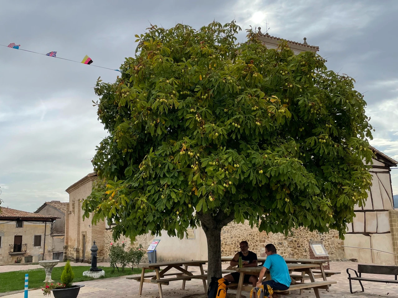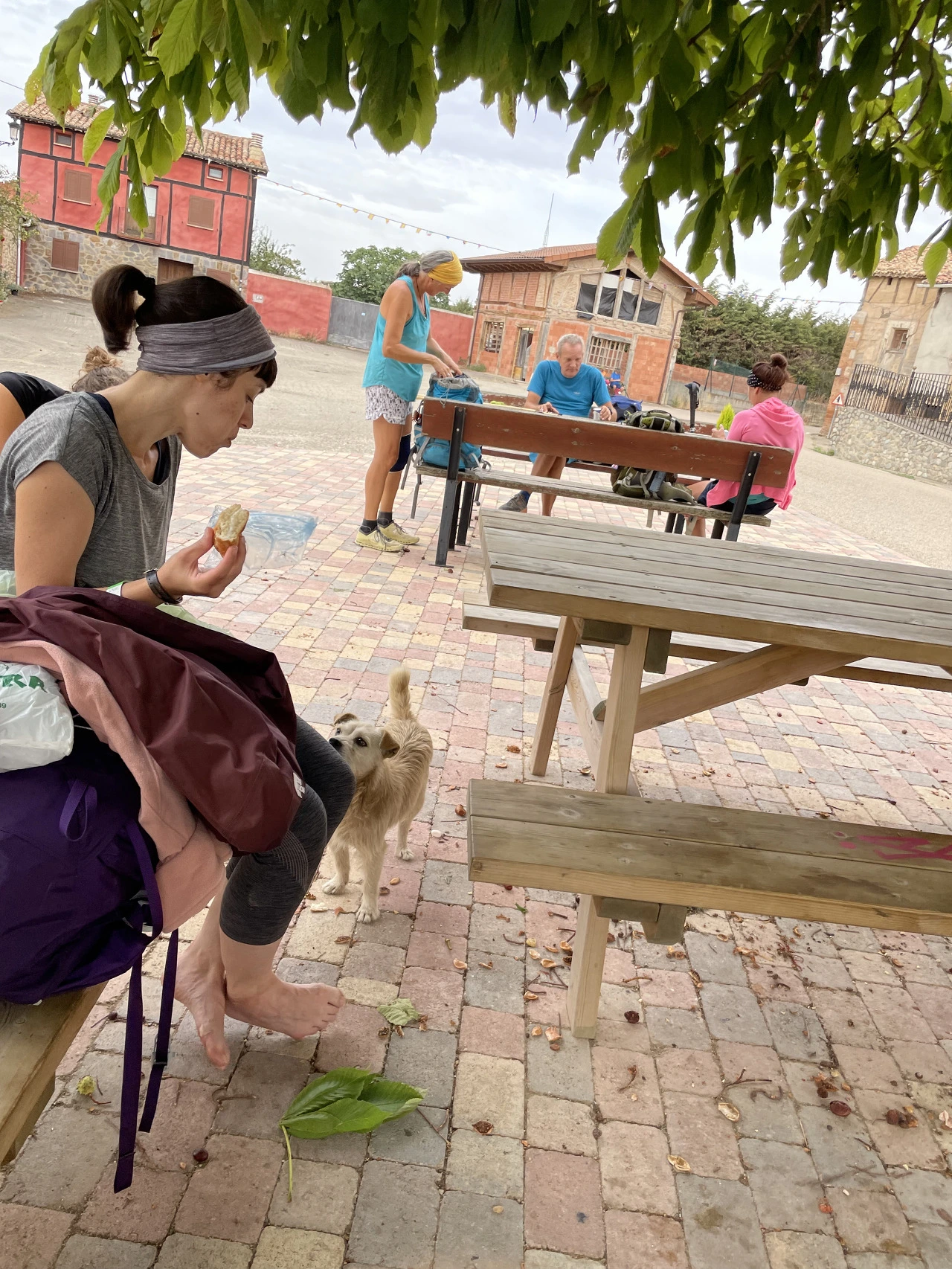 작은 마을들을 통과해 걷다가 마음에 드는 공원에서 멈춰 선다. 공원에는 큰 나무가 하나 있는데 무슨 레몬 비슷한 것이 주렁주렁 달려있다. 레몬이라고 하기엔 너무 오돌토돌했지만 무슨 나무인지 끝내 알 길은 없었다. 마을 사람 몇 명은 나와서 쉬고 있을 법 한 공원인데 떠돌이 개 한 마리만 쉬고 있는 순례자들 주변을 어슬렁거리고 있었다. 옆의 이탈리아 순례자가 버티다가 결국 빵조각을 내어주고 말았다.