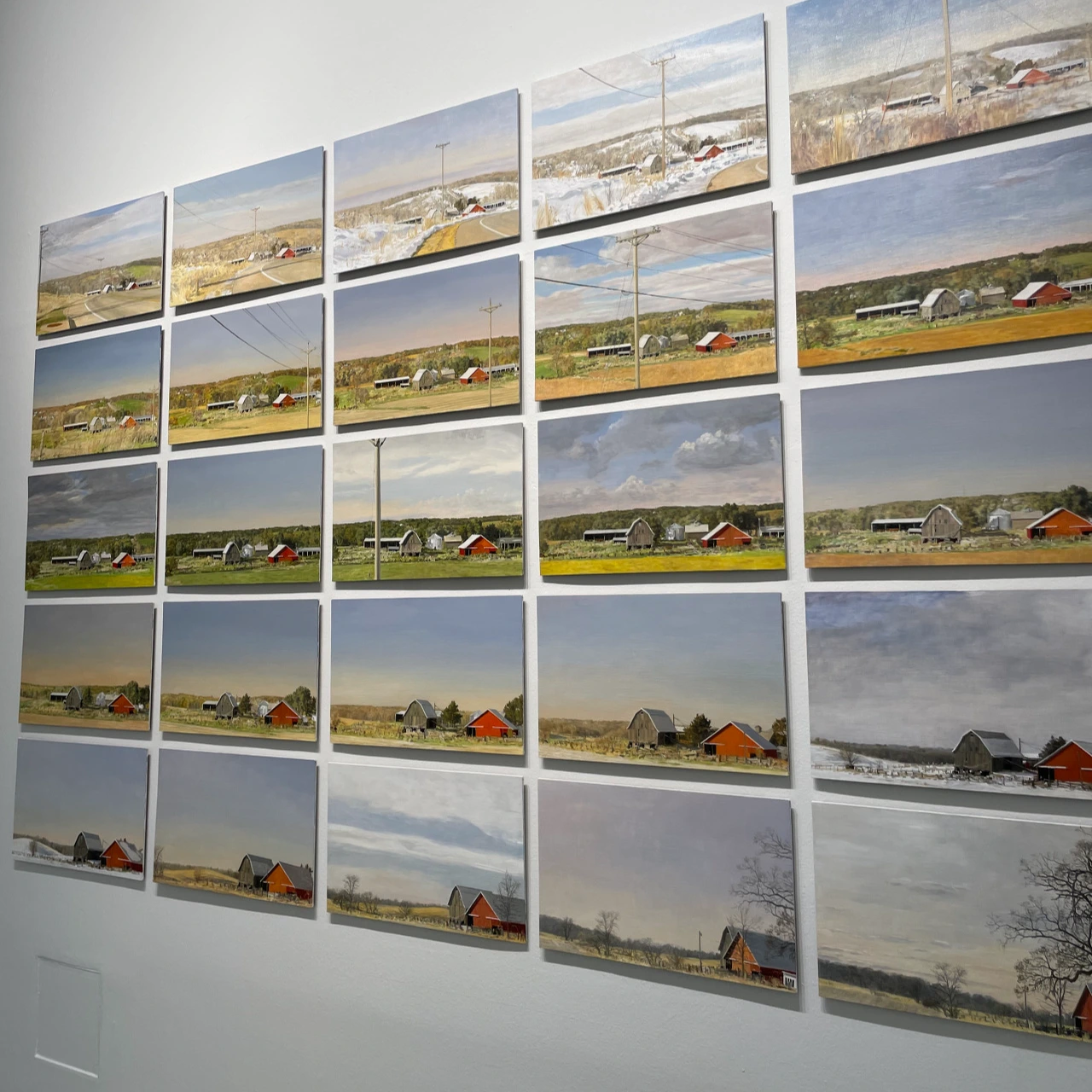 그림의 장소는 분명 작가에게 이야기와 의미가 있는 곳이겠지. 까미노를 걸으며 특정 장소에서 다수의 사진을 찍게 되는 나의 경우도 그랬다. 기억하고 싶어서 찍고 또 찍게 되는 순간들. 그러니 한 장소를 수십 장으로 그린다는 것은 1mm의 공간도 놓치고 싶지 않다는 장소에 대한 애정과 열망이 없이는 불가능하다. 그의 건물과 공간에 대한 디테일한 연작들은 그 장소와 시대에 대한 초상화였다.