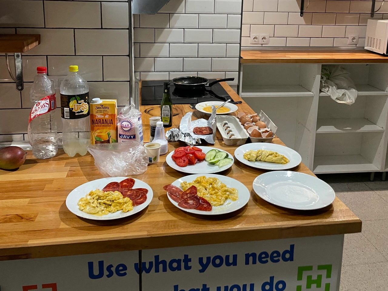 아침 8시, 이반이 간단히 아침을 차려주겠다고 해서 기다린다. 이반은 불가리안이지만 마드리드 레스토랑 셰프이다. 셰프답게 음식에 대한 자부심도 있고 까미노에서도 매끼 맛있는 걸 찾아 먹는 편이라고 한다. 티격태격하며 아침을 차려주는 이반과 소은이 꼭 남매 같다. 둘을 보면 귀여워 흐뭇하게 웃게 된다.