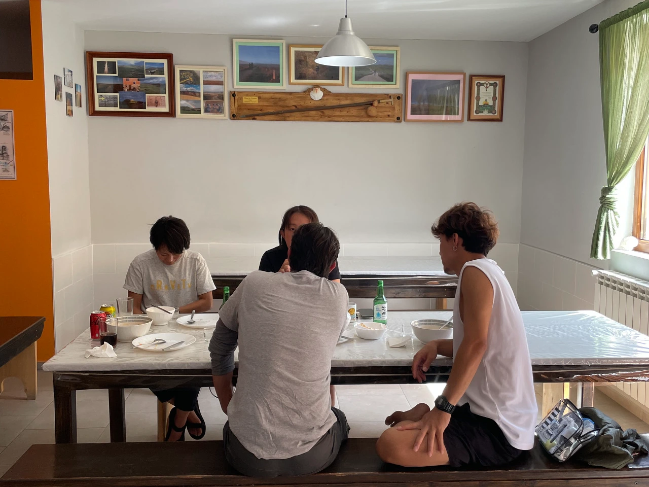 예고한 대로 오늘은 한국인이 운영하는 알베르게에 왔다. 체크인하는데 친구들이 워낙 한국 음식에 대한 기대가 커서 도착했을 때 이미 흥분 상태였다. 더군다나 까미노위에 한국인 (여)사장님이라니 왠지 특별하게 느껴져 무차별 질문으로 다소 사장님을 정신없게 해 드렸다. 나는 한국어로, 일본인 Y는 영어로, 이반은 스페인어로 질문하는 바람에 사장님은 3개 국어(한국어, 영어, 스페인어)를 섞어서 하시다가 결국 영어로 통일하셨다.
