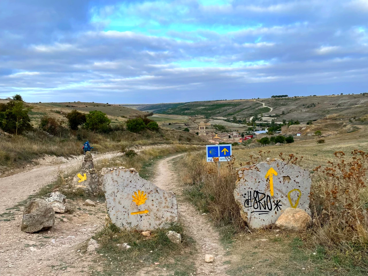 메세타가 좋은 이유가 하나 더 있다. 복붙(복사 + 붙여 넣기) 한 것 같이 같은 풍경만 계속되다가 어느 순간 저기 멀리 중세 시대 영화에나 나올법한 마을이 한눈에 보이기 시작할 때가 있다. 그 순간 생각의 메타버스에서 열일하던 자아들은 모두 흩어져 버리고. 막연한 기대감과 오늘은 뭘 먹지? 하는 단순한 생각만 품은 채 앞으로 나아가게 된다. 그런 마을을 보며 걷다 보면 내가 가는 게 아니라 마치 마을이 나에게 다가오는 것 같은 순간이 있다. 그 순간이 나는 숨 막히도록 좋다.