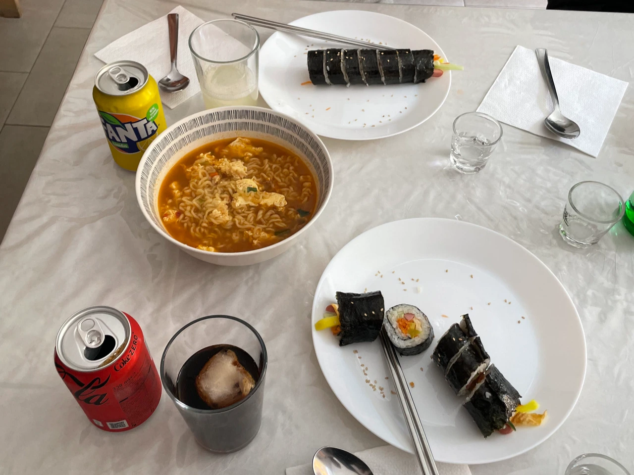 점심으로 라면과 김밥을 먹을 생각에 그 어느 때보다 속성으로 해치워 버린 샤워와 빨래. 1시 땡 점심 주문이 시작되자마자 테이블에 착석, 친구들과 라면과 김밥과 소주를 시켜 나눠 먹었다. 무슨 말이 필요할까. 뜨거운 라면은 우리를 사르르 녹이고 소주는 한 개도 안 쓰고 달달하기만 하다.
