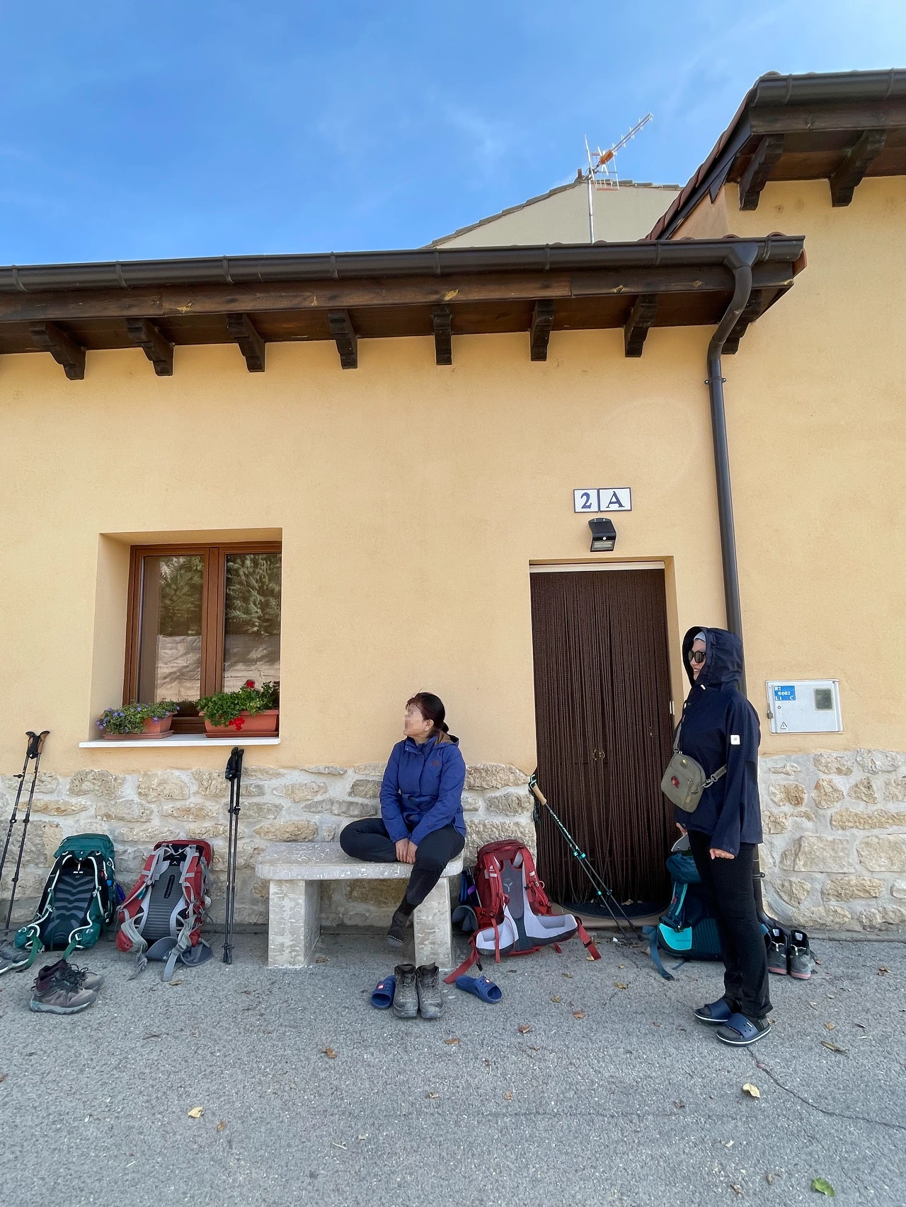 숙소 가는 길에 성당이 있어서 들렀다가 갔는데도 아직 체크인 시간 전이다. 알베르게 앞에는 메그와 몇 명의 순례자들이 기다리고 있었다. 어제 마을 산책할 때 얼핏 얼굴만 서로 봤던 한국인 모녀가 그들 중에 있다. 울산에서 왔다는 엄마와 딸. 딸은 이미 10년 전에 까미노에 온 적이 있고 이번이 두 번째라고 한다.