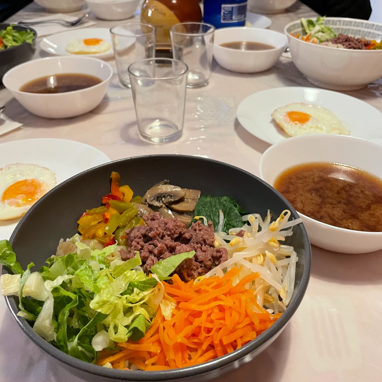각종 야채에 따듯한 흰쌀밥, 고추장과 참기름을 넣고 쓱쓱 비벼 먹으니 한 그릇이 금방 비워졌다. 이 매운맛 정말 오랜만이네! 생각보다 와인과도 마리아주가 좋았다. 여기 있는 모두가 이렇게 만족할 만한 음식이라니. 흐뭇했다.