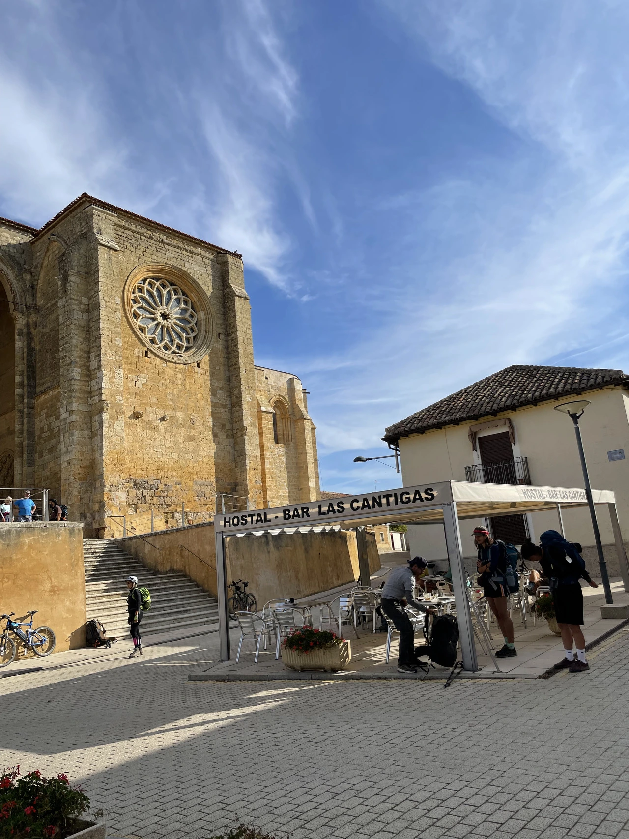 오늘 지나간 마을에는 모두 큰 규모의 성당이 있었다. 이렇게 큰 성당이 있으니 좀 큰 마을이 있으려나 싶었는데 예상 밖의 작고 아담한 마을이 나온다. 쉬기 위해 멈춘 마을 비얄까사르 데 시르가(Villalcazar de Sirga)에도 매우 큰 성당이 있었다. 성당 바로 옆에 있는 바에서 소은과 이반을 만나 함께 쉬어 갔다.