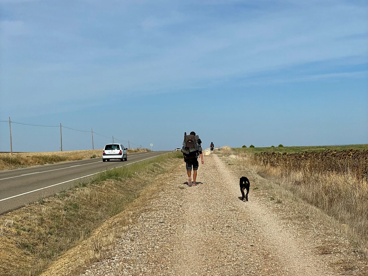 막판 1시간을 남겨두고 개와 함께 순례 중인 아저씨를 만났다. 프랑스 길만 걷는 것이 아니라 벌써 여러 달 순례길을 걷는 중이라고 한다. 함께 걷는 순례견이 꽤 우직하고 믿음직해 보였다. 사람들이 귀여워해 줘도 안기거나 하는 반응을 보이지 않고 친구와 묵묵히 제 갈 길 가는 개라니. 말없이 걷다가 갑자기 사람처럼 한마디 툭 던질 것만 같았다.